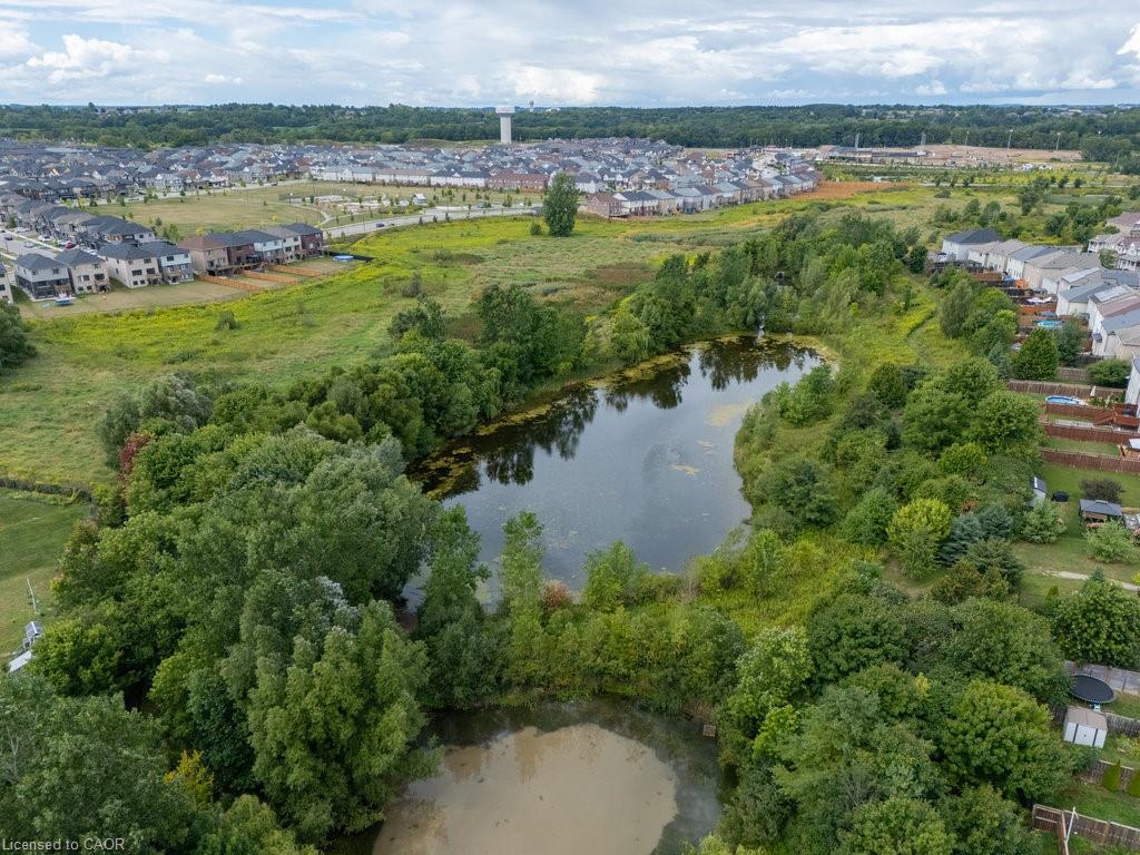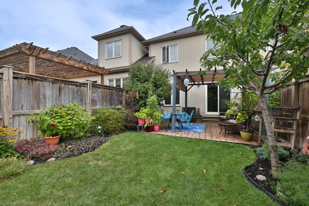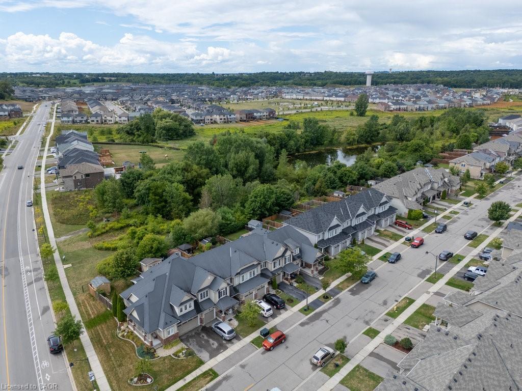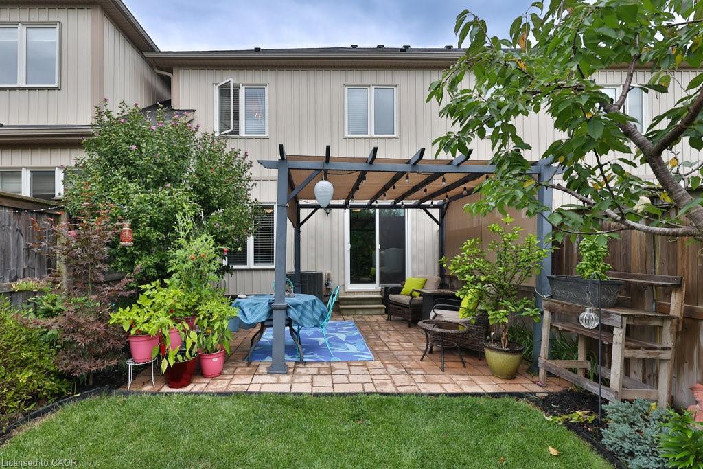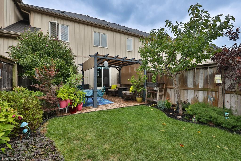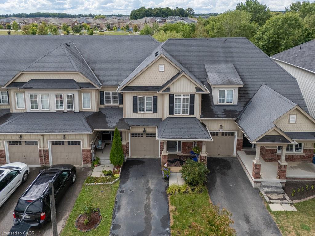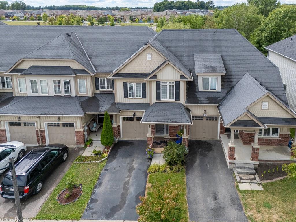 Welcome home. FREEHOLD – Beautifully maintained 3-bedroom, 3-bath townhouse offering 1,495 sq. ft. in the family-friendly West Brant community. Ideally situated close to schools, shopping, walking trails & parks. Premium lot backing onto a pond with no rear neighbours! Move-in ready home features a single-car garage with inside entry, custom new front door, hardwood flooring on the main level and 9’ ceilings. The open-concept living/dining area flows into an eat-in kitchen with updated stainless steel appliances, and a centre island for additional prep space. Newer sliding doors lead to a fully fenced backyard oasis, perfect for extending your living space outdoors. A gardener’s delight that feels like country living within the city. Upstairs you’ll find newer vinyl flooring, a spacious primary suite with walk-in closet and ensuite with an oversized shower, 2 additional bedrooms, a bright home office nook and a 4-pc bathroom. Stylish finishes, bright open layout, and a premium pond lot with a backyard oasis…this one won’t disappoint!