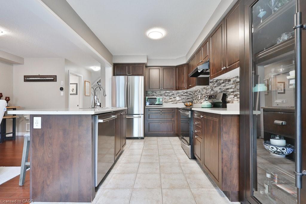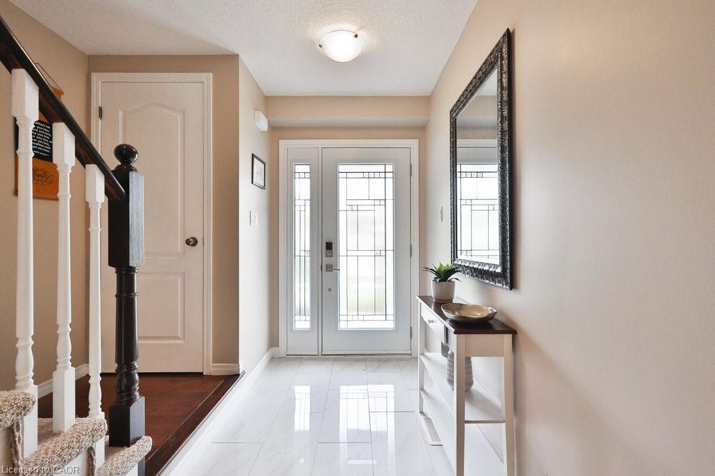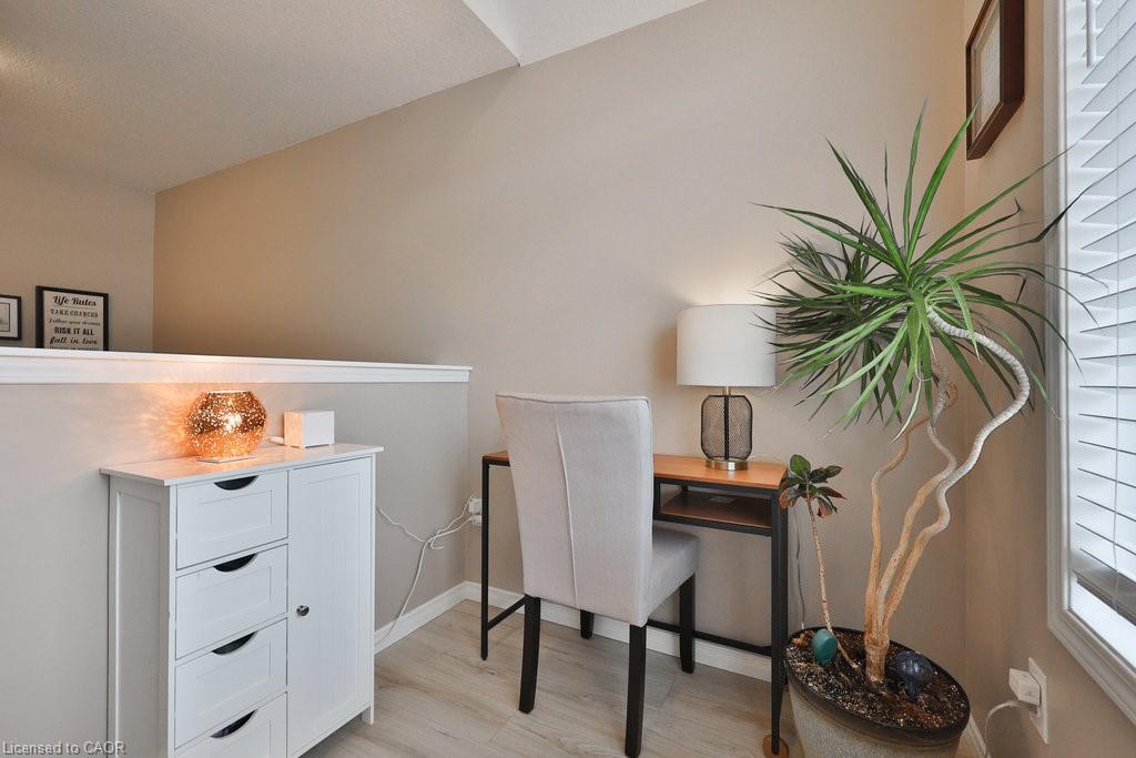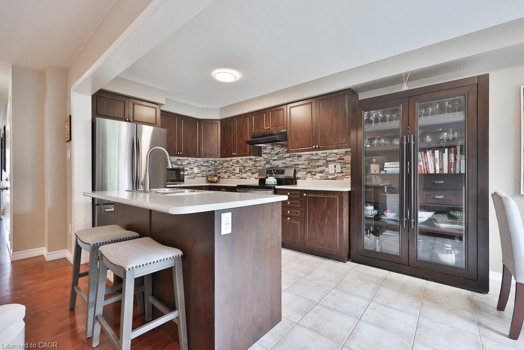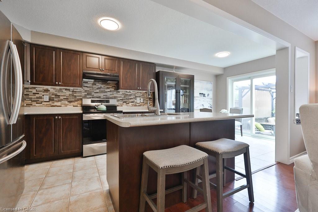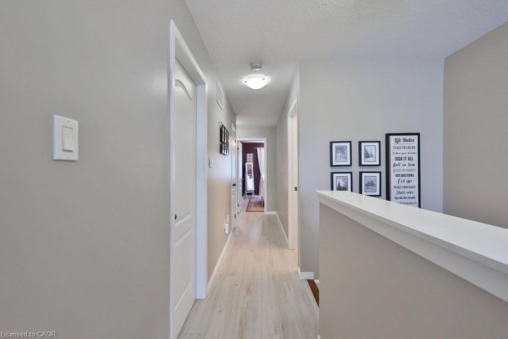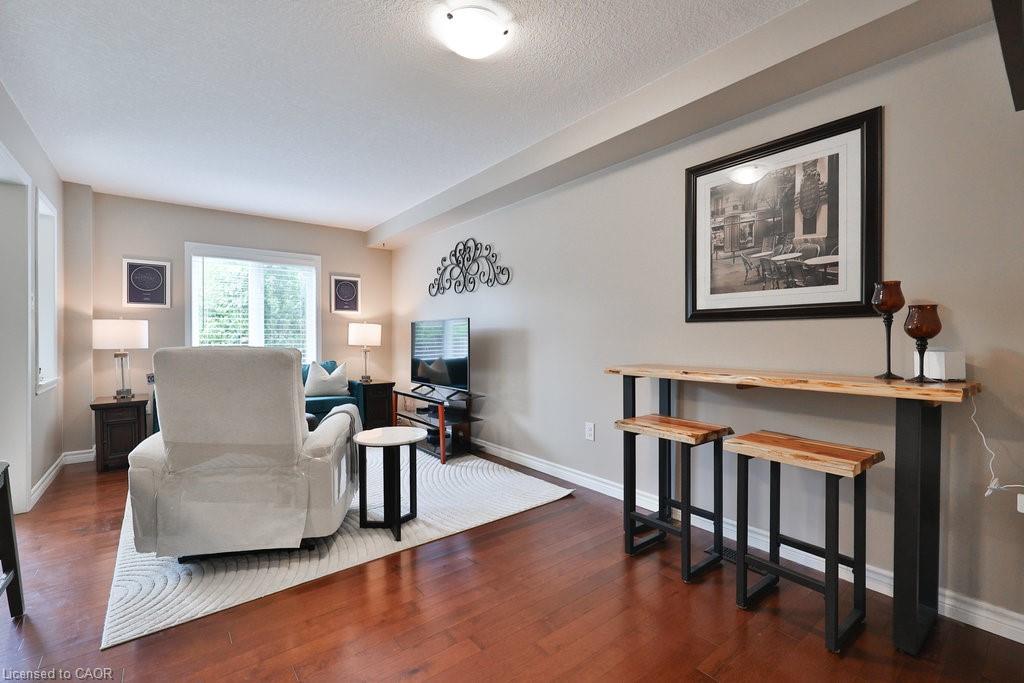 Welcome home. FREEHOLD – Beautifully maintained 3-bedroom, 3-bath townhouse offering 1,495 sq. ft. in the family-friendly West Brant community. Ideally situated close to schools, shopping, walking trails & parks. Premium lot backing onto a pond with no rear neighbours! Move-in ready home features a single-car garage with inside entry, custom new front door, hardwood flooring on the main level and 9’ ceilings. The open-concept living/dining area flows into an eat-in kitchen with updated stainless steel appliances, and a centre island for additional prep space. Newer sliding doors lead to a fully fenced backyard oasis, perfect for extending your living space outdoors. A gardener’s delight that feels like country living within the city. Upstairs you’ll find newer vinyl flooring, a spacious primary suite with walk-in closet and ensuite with an oversized shower, 2 additional bedrooms, a bright home office nook and a 4-pc bathroom. Stylish finishes, bright open layout, and a premium pond lot with a backyard oasis…this one won’t disappoint!