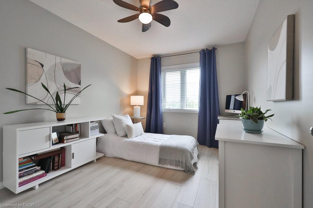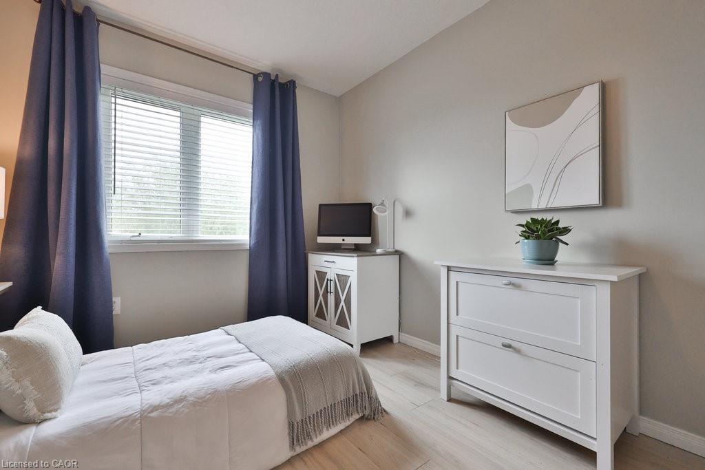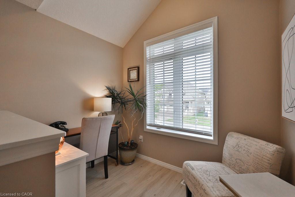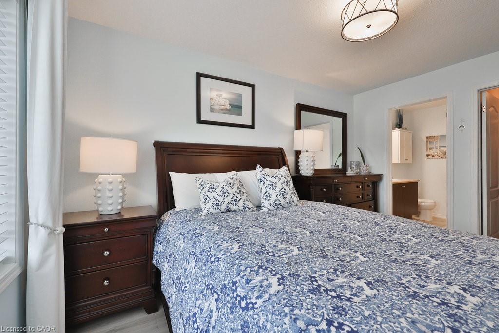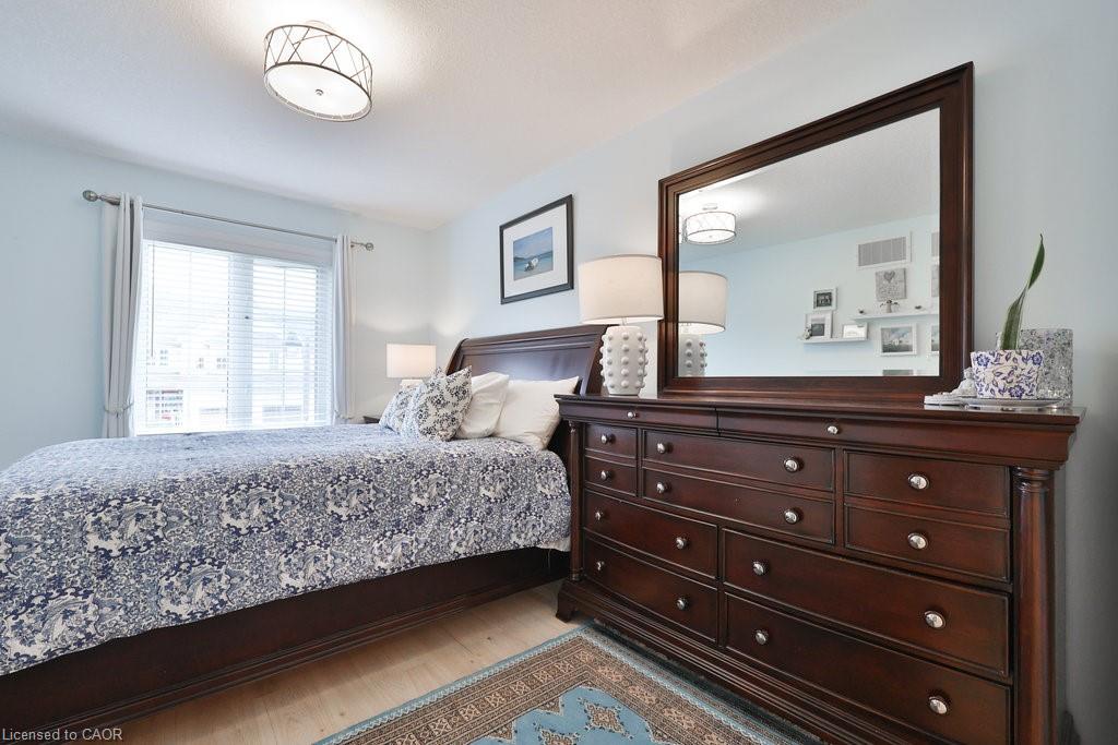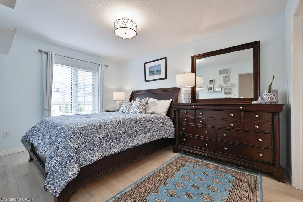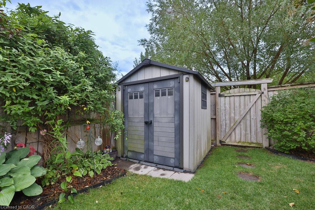 Welcome home. FREEHOLD – Beautifully maintained 3-bedroom, 3-bath townhouse offering 1,495 sq. ft. in the family-friendly West Brant community. Ideally situated close to schools, shopping, walking trails & parks. Premium lot backing onto a pond with no rear neighbours! Move-in ready home features a single-car garage with inside entry, custom new front door, hardwood flooring on the main level and 9’ ceilings. The open-concept living/dining area flows into an eat-in kitchen with updated stainless steel appliances, and a centre island for additional prep space. Newer sliding doors lead to a fully fenced backyard oasis, perfect for extending your living space outdoors. A gardener’s delight that feels like country living within the city. Upstairs you’ll find newer vinyl flooring, a spacious primary suite with walk-in closet and ensuite with an oversized shower, 2 additional bedrooms, a bright home office nook and a 4-pc bathroom. Stylish finishes, bright open layout, and a premium pond lot with a backyard oasis…this one won’t disappoint!
