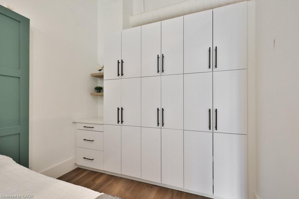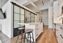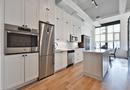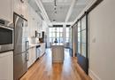 Welcome Home to the historic Kaufman Lofts in the heart of the Innovation District! This stunning 2-bedroom loft perfectly blends urban style with contemporary comfort. Featuring 14’ ceilings, luxury vinyl plank flooring, and custom barn doors, this open-concept space exudes character and sophistication. The modern kitchen showcases extended-height cabinetry, a large working island with seating, quartz countertops, and stainless steel appliances, ideal for both everyday living and entertaining. Enjoy an abundance of natural light through oversized windows and take advantage of custom built-in storage in each bedroom, plus the convenience of in-suite laundry. Residents of Kaufman Lofts enjoy access to premium amenities including a rooftop patio with community BBQ and dining area, a meeting/party room, bicycle storage, and visitor parking. Located just steps to the new Google Office, Sun Life and Manulife head offices, as well as restaurants, shops, and LRT transit, this loft offers the ultimate downtown lifestyle.