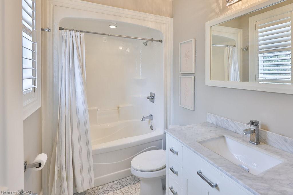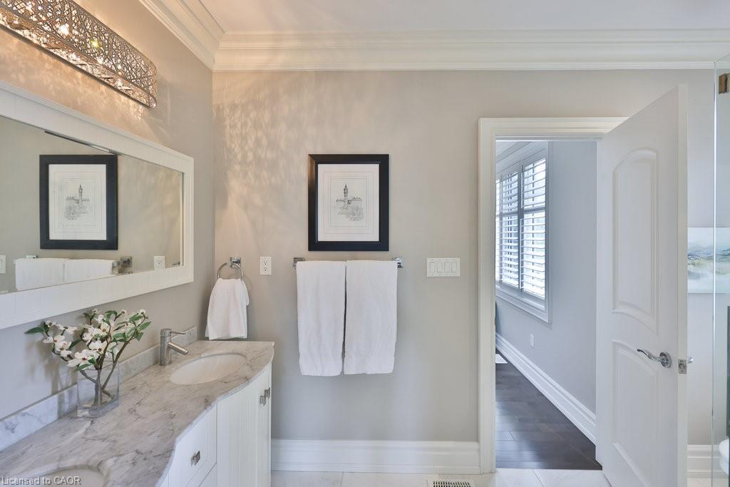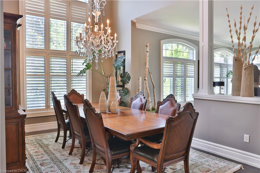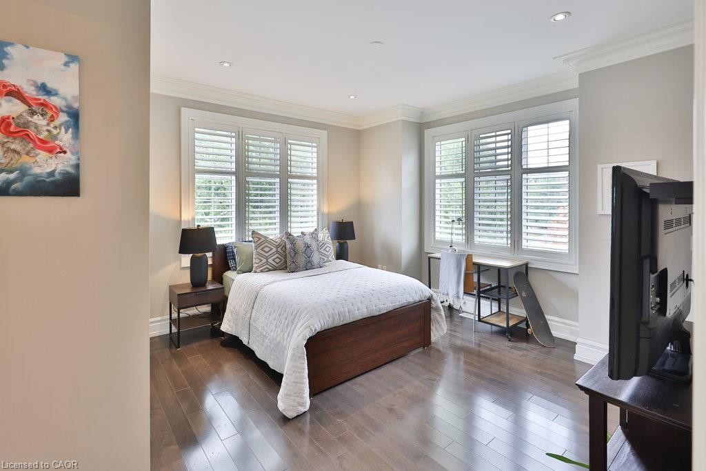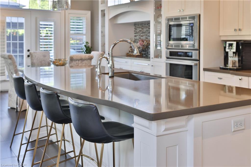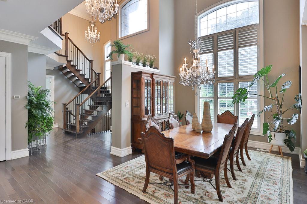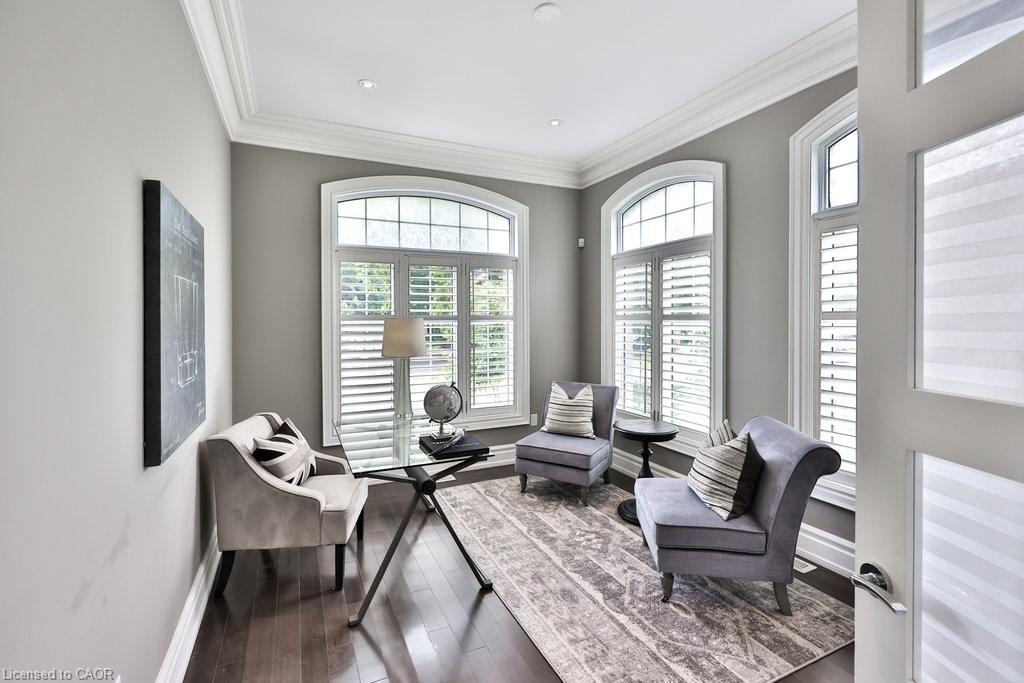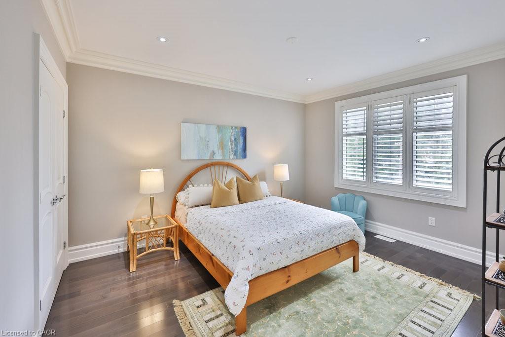 Welcome home. Prestigious Lakeshore address, just steps from the water’s edge and a short stroll to Burlington’s vibrant downtown core. This custom-built residence showcases timeless elegance and exceptional curb appeal, framed by lush, landscaped gardens. Inside, a grand foyer with soaring ceilings and walls of windows flood the home with natural light, introducing airy and sophisticated interiors. At its heart lies a designer kitchen—an entertainer’s dream, featuring a sprawling island with bar seating, quartz countertops, a full wall of refrigeration, premium Thermador appliances (including two dishwashers), abundant storage, and seamless flow into the sunlit dining area. The open-concept layout continues into the expansive great room, anchored by a striking stone fireplace, and transitions effortlessly into the formal dining area. A private office/den, elegant powder room, custom mudroom, and interior access to the oversized double garage complete the main level. Upstairs, the luxurious primary suite offers a cozy fireplace, spa-inspired five-piece ensuite, and spacious walk-in closet. Three additional bedrooms, each with ensuite or semi-ensuite access, provide comfort and privacy, while a convenient laundry room completes this level. Step outside to your private backyard oasis, surrounded by mature, colorful gardens. Two patios, including one with a large pergola, create the perfect setting for relaxation or outdoor entertaining. The lower level presents endless possibilities with soaring ceilings, an expansive open layout, rough-ins for kitchen and bathroom, heated floor hookups, generous storage, and a separate enclosed room ideal for an additional bedroom or flexible living space. Luxury Certified.