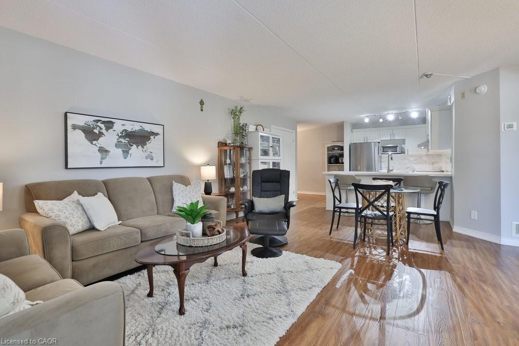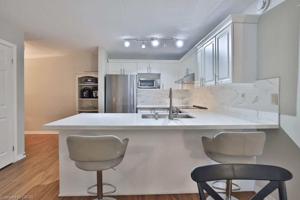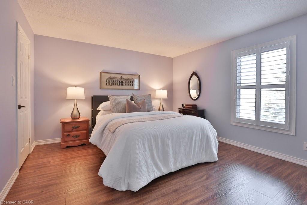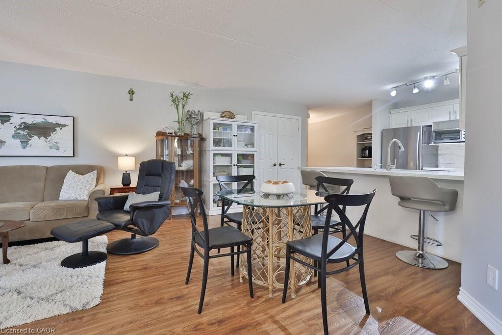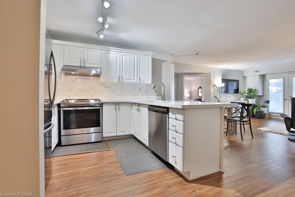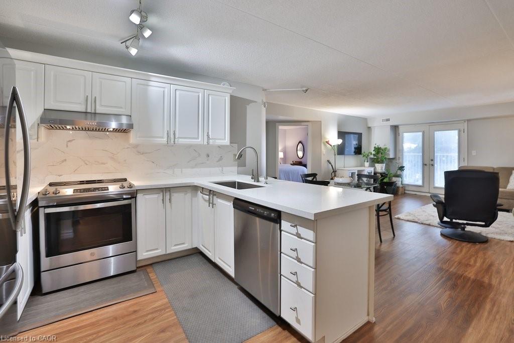 One of the largest units in the complex — offering space, comfort, and easy living in Headon Forest! Welcome home to this bright and beautifully maintained 2-bedroom, 1-bath condo in North Burlington’s sought-after Headon Forest neighbourhood. A spacious open-concept layout and a private, tree-lined balcony, this move-in ready unit is perfect for everyday living and entertaining. The updated kitchen features white cabinetry, quartz countertops, stainless steel appliances, and a breakfast bar with plenty of seating — plus room for a proper dining table. The open living and dining area feels warm and inviting, with great natural light throughout. The oversized primary bedroom features a walk-in closet and plenty of space to unwind, while the 2nd bedroom offers a charming bay window and good closet space. Both bedrooms are finished with California shutters and filled with natural light. The updated 5-piece bathroom includes double sinks, quartz counters, a soaker tub, and a separate shower. In-suite laundry (with a newer Samsung stackable washer and dryer) is conveniently tucked away in the bathroom closet. Step outside to your private east-facing balcony — surrounded by trees and large enough for seating and a BBQ. It’s the perfect spot for morning coffee or relaxing at the end of the day. Extras you’ll love: • In-suite laundry • Updated Kitchen and bathroom • Two side-by-side underground parking spaces (rare!) • Storage locker. Close to parks, schools, walking trails, shopping, restaurants, Tansley Woods Community Centre, and easy highway access (403, 407, QEW) plus Burlington and Appleby GO Stations. A great option for commuters, downsizers, or anyone looking for a low-maintenance lifestyle in a fantastic Burlington neighbourhood.