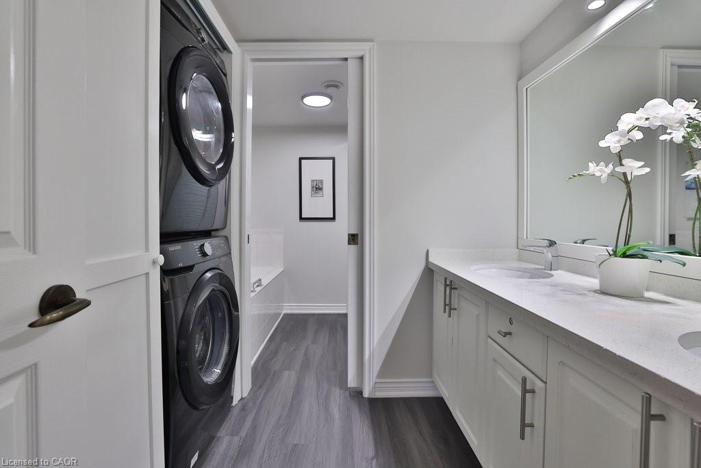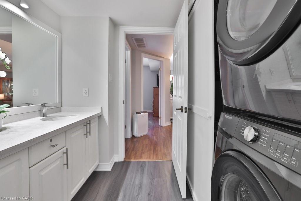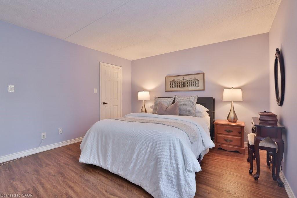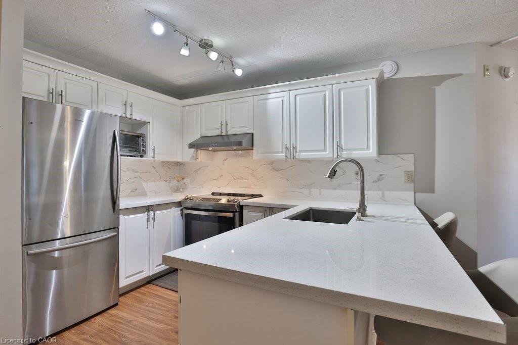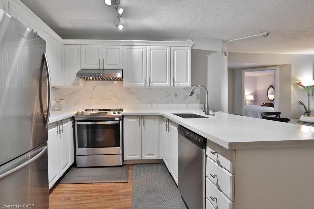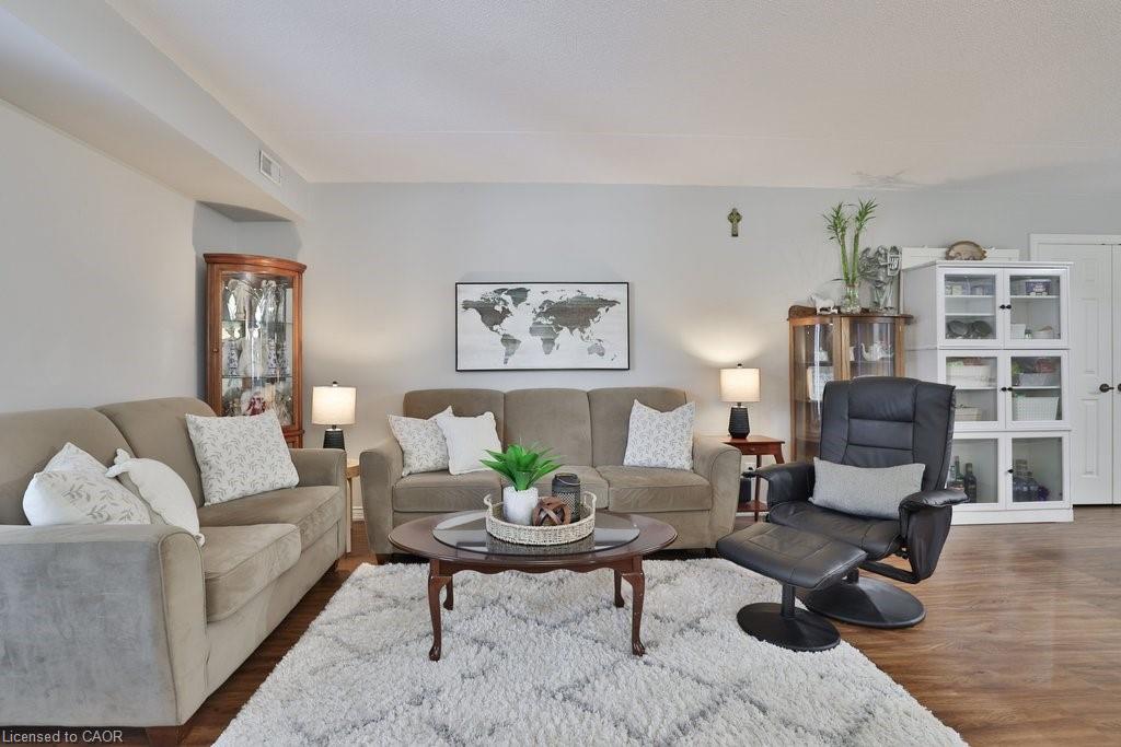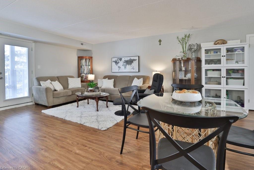 One of the largest units in the complex — offering space, comfort, and easy living in Headon Forest! Welcome home to this bright and beautifully maintained 2-bedroom, 1-bath condo in North Burlington’s sought-after Headon Forest neighbourhood. A spacious open-concept layout and a private, tree-lined balcony, this move-in ready unit is perfect for everyday living and entertaining. The updated kitchen features white cabinetry, quartz countertops, stainless steel appliances, and a breakfast bar with plenty of seating — plus room for a proper dining table. The open living and dining area feels warm and inviting, with great natural light throughout. The oversized primary bedroom features a walk-in closet and plenty of space to unwind, while the 2nd bedroom offers a charming bay window and good closet space. Both bedrooms are finished with California shutters and filled with natural light. The updated 5-piece bathroom includes double sinks, quartz counters, a soaker tub, and a separate shower. In-suite laundry (with a newer Samsung stackable washer and dryer) is conveniently tucked away in the bathroom closet. Step outside to your private east-facing balcony — surrounded by trees and large enough for seating and a BBQ. It’s the perfect spot for morning coffee or relaxing at the end of the day. Extras you’ll love: • In-suite laundry • Updated Kitchen and bathroom • Two side-by-side underground parking spaces (rare!) • Storage locker. Close to parks, schools, walking trails, shopping, restaurants, Tansley Woods Community Centre, and easy highway access (403, 407, QEW) plus Burlington and Appleby GO Stations. A great option for commuters, downsizers, or anyone looking for a low-maintenance lifestyle in a fantastic Burlington neighbourhood.
