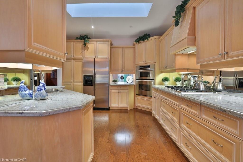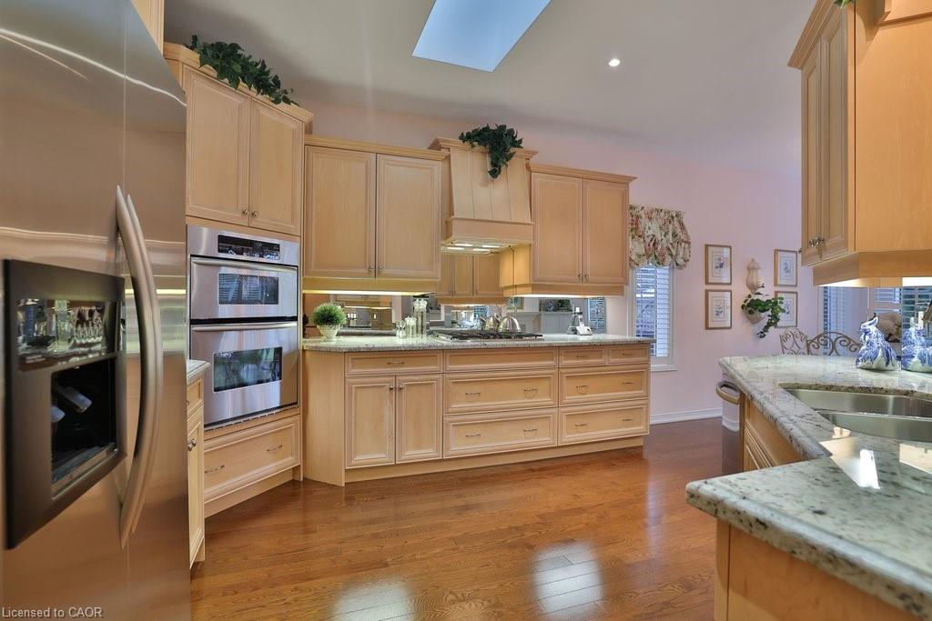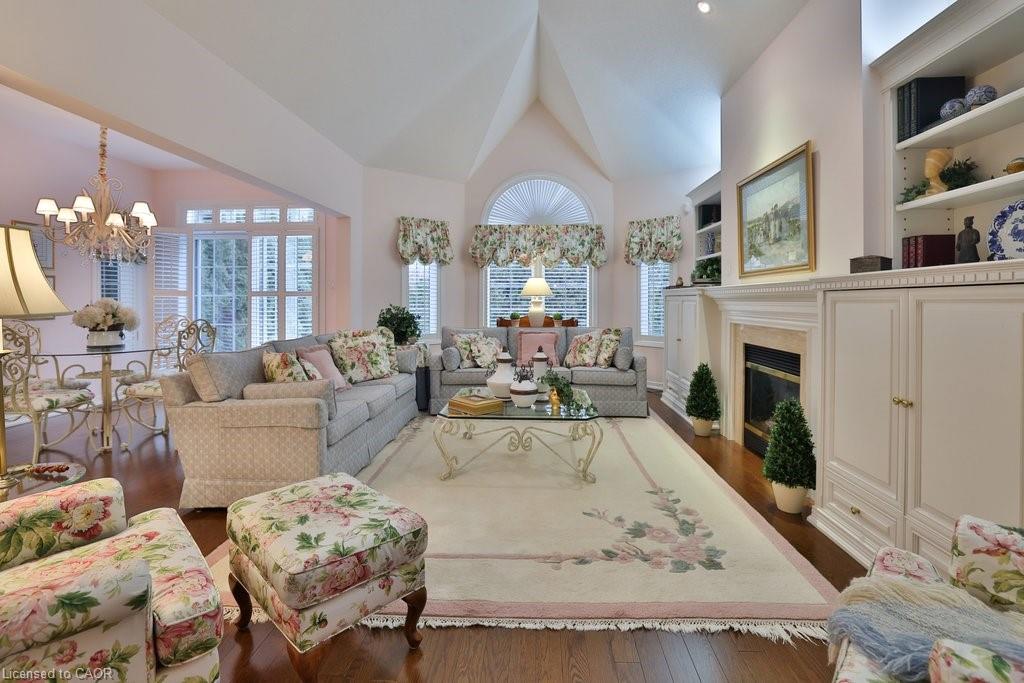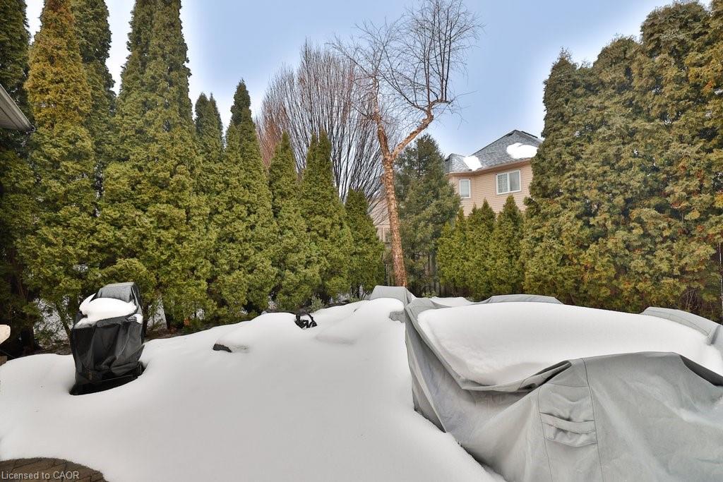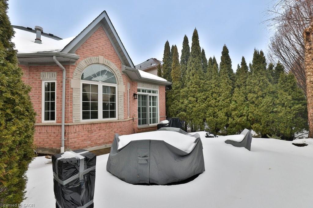 Welcome home. Desirable bungalow in sought-after Millcroft offering main floor living at its best. Ideal for entertaining family and friends, this home features a formal living room and dining room designed for both comfort and style. The spacious kitchen showcases granite countertops, stainless steel appliances, and a skylight that fills the space with natural light. A large breakfast area provides direct access to the backyard—perfect for easy summer BBQs. The inviting family room boasts vaulted ceilings, a cozy fireplace, and custom built-ins, creating a warm and welcoming atmosphere. The main floor primary bedroom retreat features vaulted ceilings, a walk-in closet, and a 4-piece ensuite. A stylish guest bedroom, an additional 4-piece bath, and a convenient laundry room with garage access complete the main level. The partially finished lower level offers additional living space with a third bedroom or office and a 3-piece bath—ideal for guests, hobbies, or work-from-home needs. Step outside to a fabulous outdoor space featuring a large patio perfect for al fresco dining, surrounded by a mature treeline that provides exceptional privacy. A wonderful opportunity to enjoy comfortable, easy living in a highly desirable neighbourhood.
