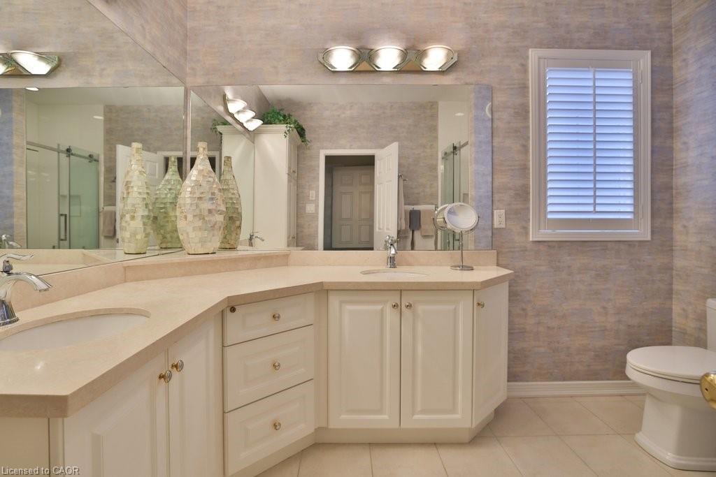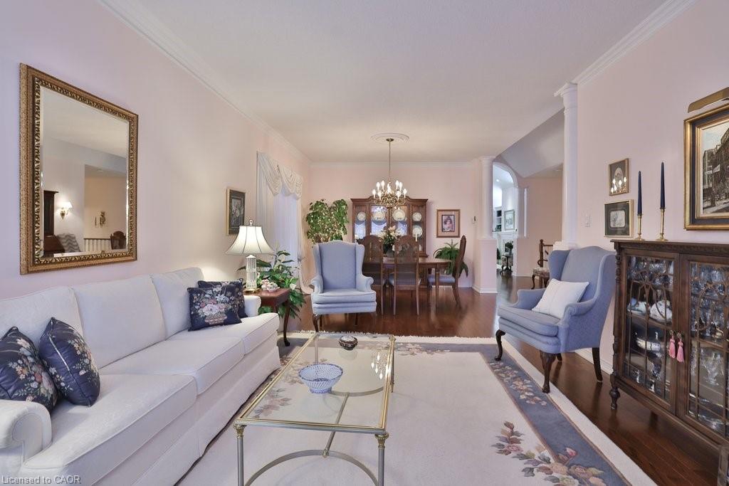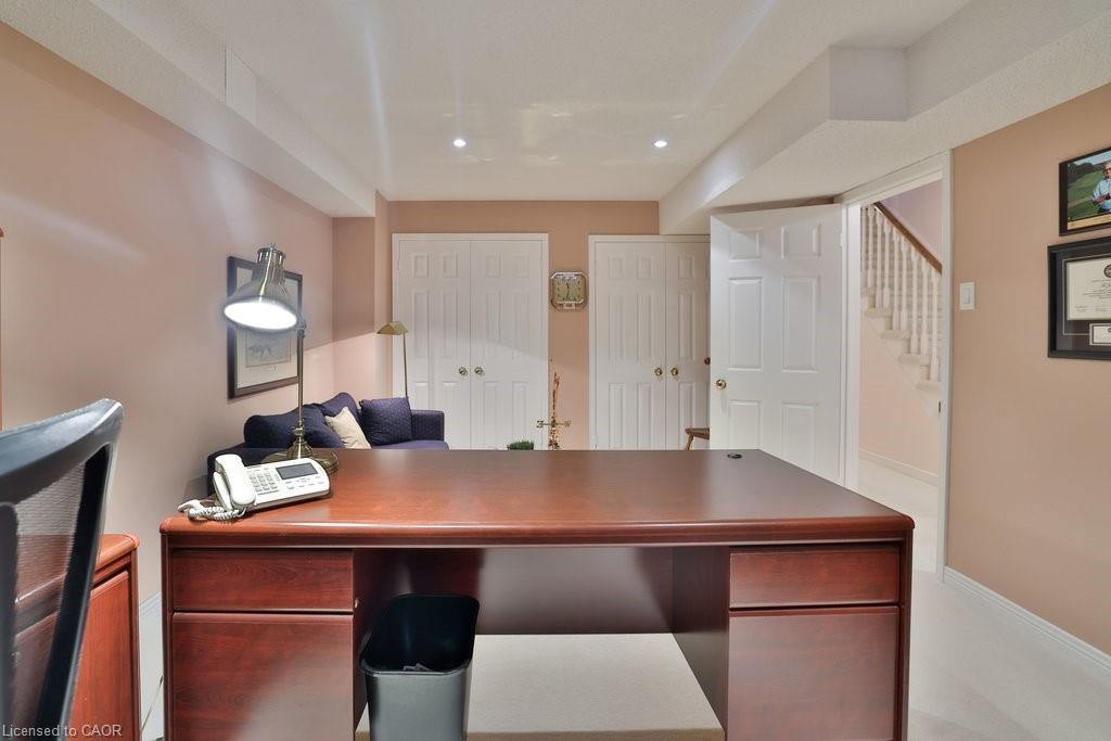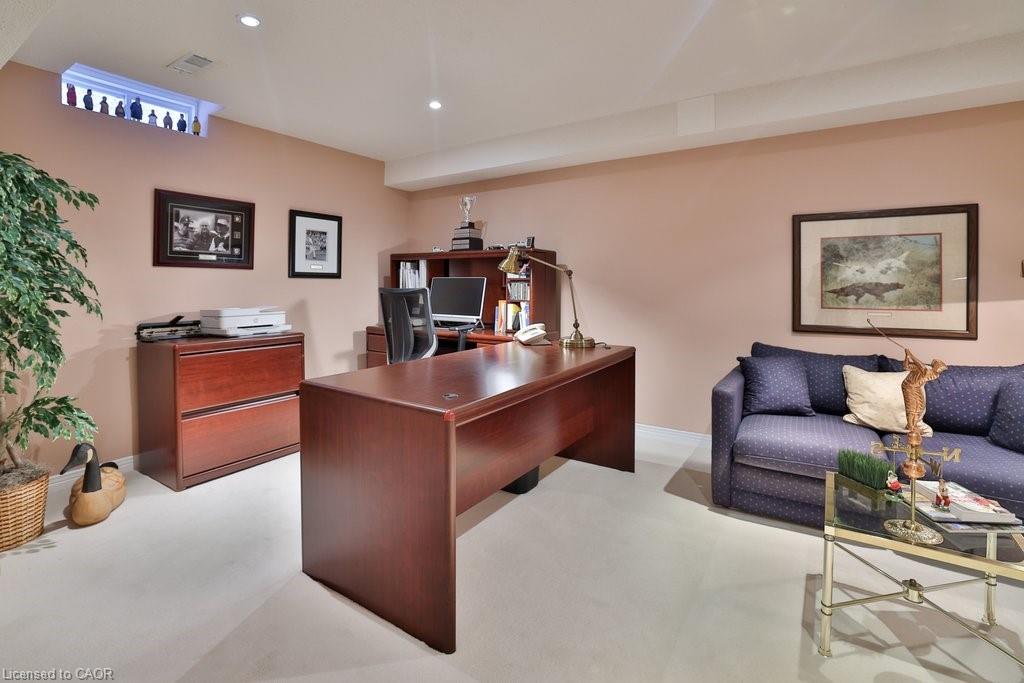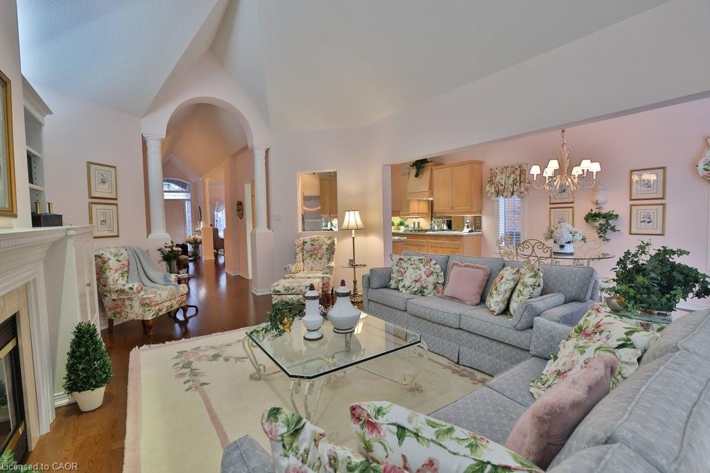 Welcome home. Desirable bungalow in sought-after Millcroft offering main floor living at its best. Ideal for entertaining family and friends, this home features a formal living room and dining room designed for both comfort and style. The spacious kitchen showcases granite countertops, stainless steel appliances, and a skylight that fills the space with natural light. A large breakfast area provides direct access to the backyard—perfect for easy summer BBQs. The inviting family room boasts vaulted ceilings, a cozy fireplace, and custom built-ins, creating a warm and welcoming atmosphere. The main floor primary bedroom retreat features vaulted ceilings, a walk-in closet, and a 4-piece ensuite. A stylish guest bedroom, an additional 4-piece bath, and a convenient laundry room with garage access complete the main level. The partially finished lower level offers additional living space with a third bedroom or office and a 3-piece bath—ideal for guests, hobbies, or work-from-home needs. Step outside to a fabulous outdoor space featuring a large patio perfect for al fresco dining, surrounded by a mature treeline that provides exceptional privacy. A wonderful opportunity to enjoy comfortable, easy living in a highly desirable neighbourhood.