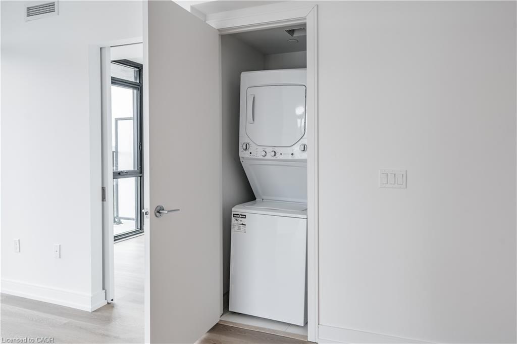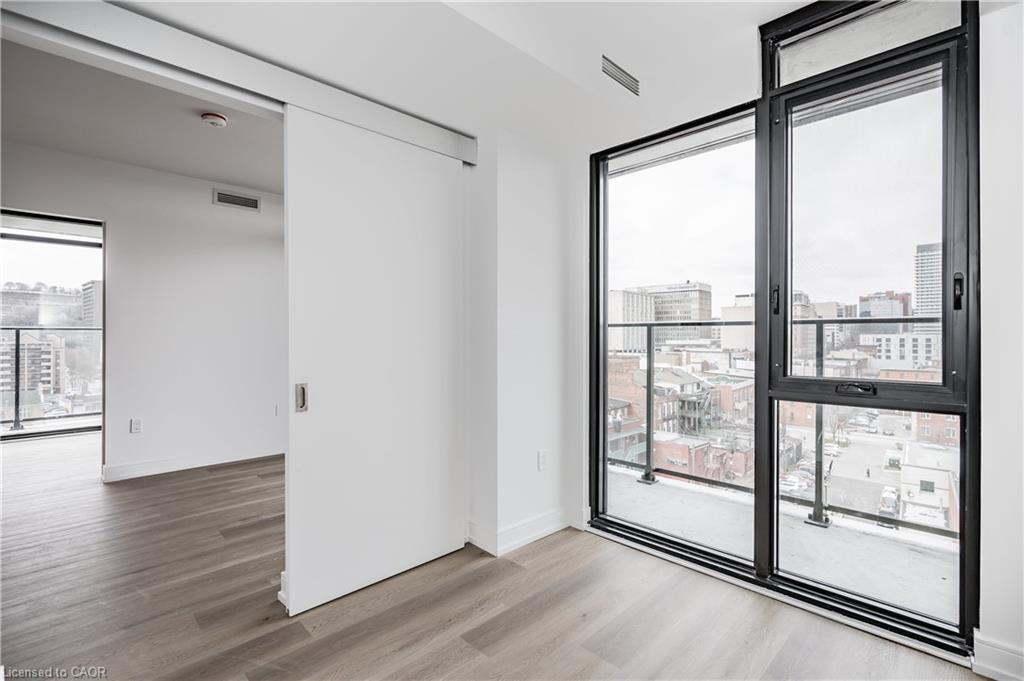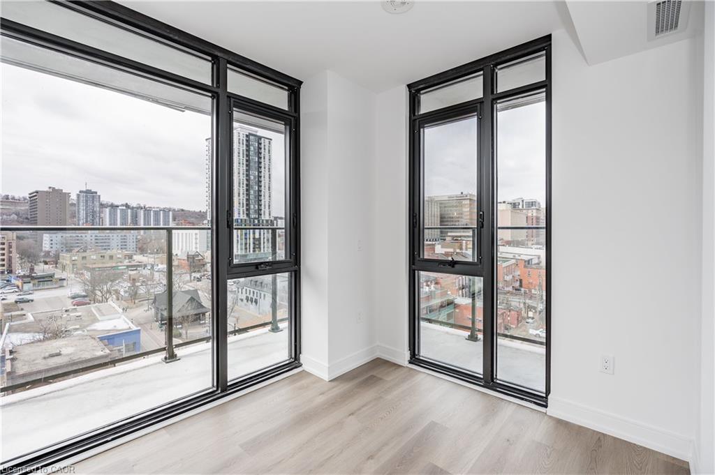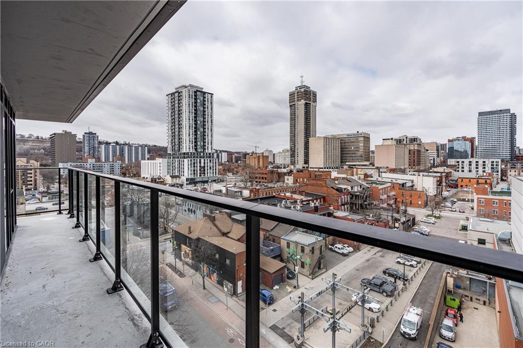Presenting Unit 911–1 Jarvis Street, a newly built condo featuring 2 bedrooms, 2 full bathrooms, and a wraparound balcony, located in central Hamilton. This beautiful, modern corner unit features a bright, open layout with a stylish kitchen, a living room with a balcony walk-out, a primary bedroom with floor-to-ceiling windows spanning the entire length of one wall and a 3-piece ensuite, a good-sized second bedroom, and a 4-piece bathroom near the foyer. Enjoy panoramic views from your personal wraparound balcony, providing an extra 209 sq ft of living space for a total of 864 sq ft. Within walking distance of the great restaurants and shops that King William Street and James Street North have to offer, this trendy, upscale condominium offers a fitness centre, a common office area, and concierge service. Equipped with in-suite laundry, 1 underground parking spot, and 1 locker, this unit is perfect for professionals or a couple looking for clean, modern, convenient living! Available as of May 1st, 2026.