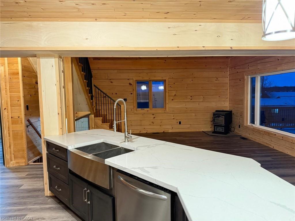 Welcome to this 2-storey waterfront home featuring 3 bedrooms and 2.5 bathrooms, all nestled on a scenic lot on Sturgeon Lake! The main level offers a spacious foyer, a captivating living room with vaulted ceilings, a dining area with a deck walk-out, and a stunning kitchen. Large windows along the rear of the home provide abundant waterfront views. The primary bedroom is conveniently located on the main floor and includes a 3-piece ensuite. Completing the main level is an inside entry from the garage, laundry, and a 2-piece bathroom. Upstairs, enjoy a spacious family room, perfect for relaxing after a day outdoors, along with two additional bedrooms and a 3-piece bathroom. The basement offers generous storage space. The driveway provides ample parking, and the triple garage includes a double garage door at the front and a single garage door opening to the rear. The backyard features a large deck, ideal for dining while taking in the view and soaking up the summertime. Take advantage and call this waterfront home yours.