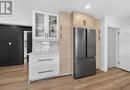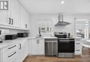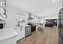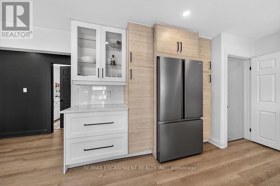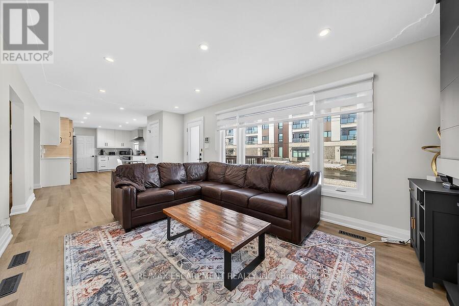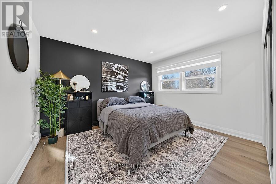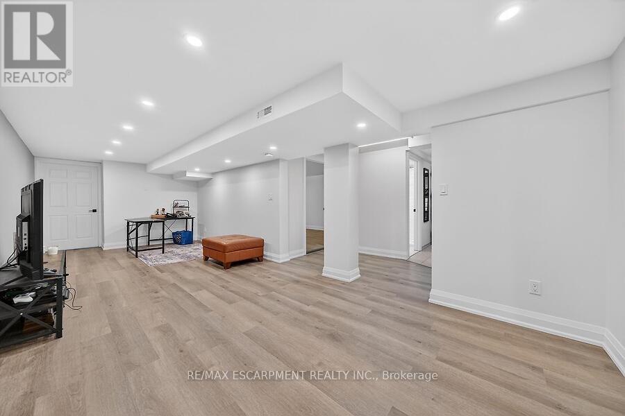 Bright, freshly updated 2-bedroom, 2-bathroom bungalow on a corner lot in Beamsville, close to shopping, amenities, and highway access. Features new vinyl flooring throughout, a living room with dark accent wall, and a modern open-concept layout. Kitchen offers white and natural wood-tone cabinetry, quartz countertops, and updated appliances. Previously a 3-bedroom, now configured with a versatile den or mudroom and walkout to a fully fenced yard. Finished lower level includes family room with pot lights, games/media space, 3-piece bath, and in-suite laundry. Separate entrance to attached garage and storage. Ample parking and great curb appeal. Rental application, references, proof of income, and credit report/score required. (id:52316)
