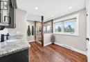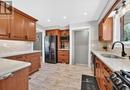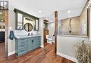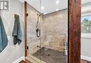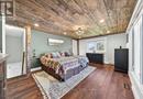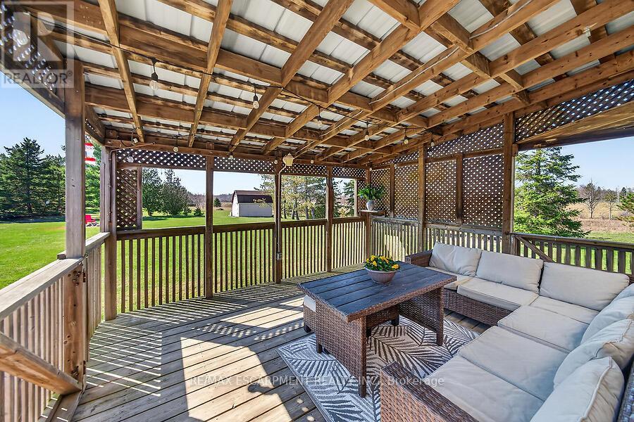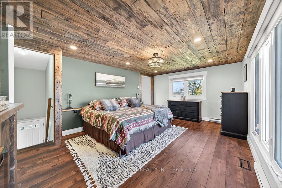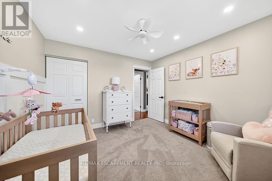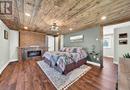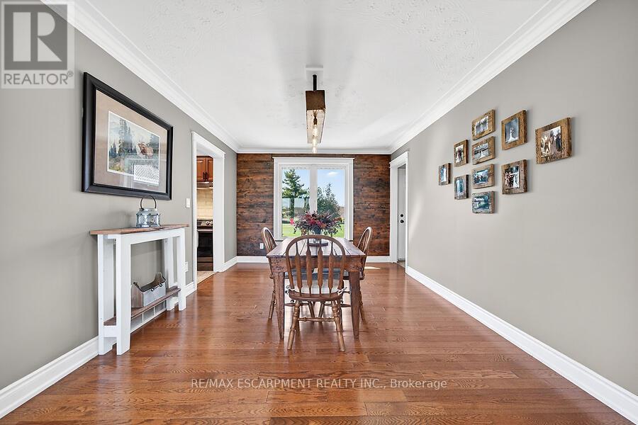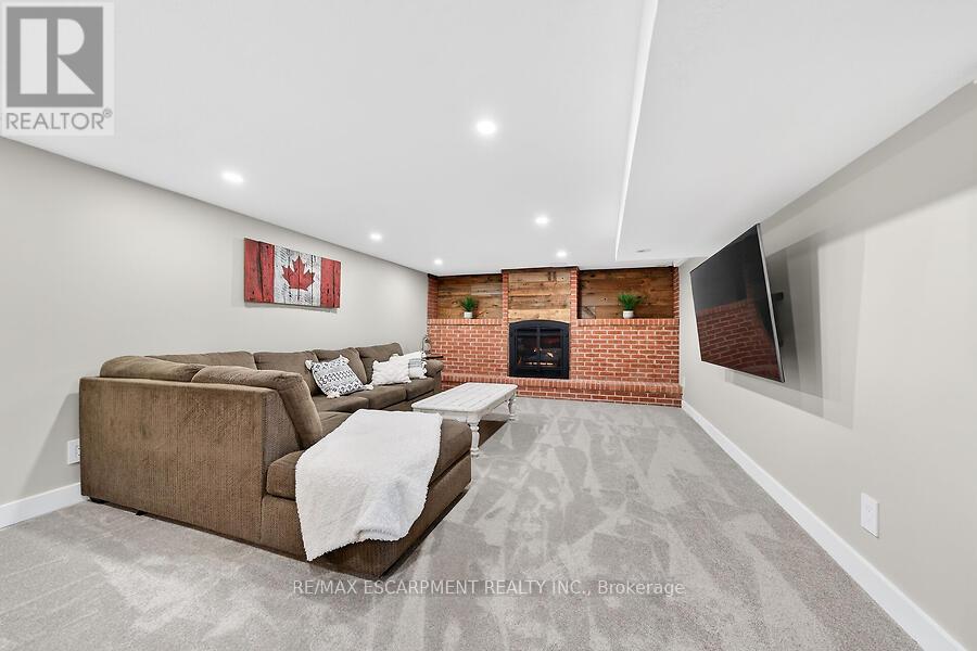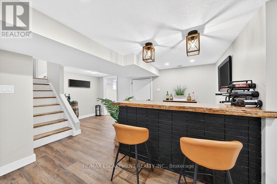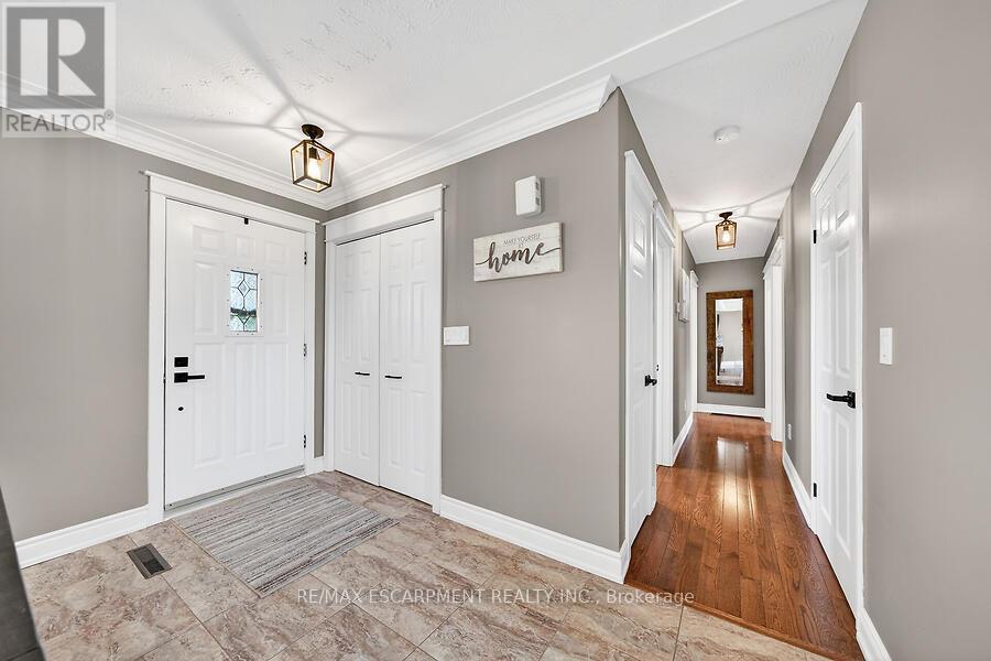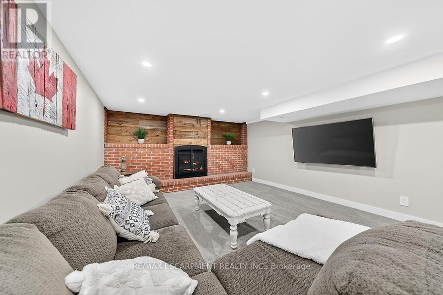 Welcome to this country 4+1, 2 full bath home with natural gas heating, set on a private lot in West Lincoln. The main floor features an L-shaped living and dining room with hardwood floors and a bay window overlooking the expansive front porch. The upgraded kitchen offers custom cabinetry and access to the backyard patio, hot tub, and lower level. There are 3 main floor bedrooms and a beautifully renovated custom bathroom. Off the dining room, the upper-level primary retreat offers a separate entrance, electric fireplace, reclaimed wood accents, and an upgraded ensuite with walk-in shower. The recently renovated lower level includes soundproofing, new flooring, a spacious open-concept family room with wall-to-wall brick and natural gas fireplace insert, bar area with live-edge finishes, an additional bedroom with walk-up access to the attached garage, plus storage and utility rooms. The south-facing outdoor space is perfect for relaxing and enjoying sunset spritzes. Bonus features include reclaimed wood and natural stone finishes, extensive pot lighting, forced air natural gas heating, and generator. (id:52316)