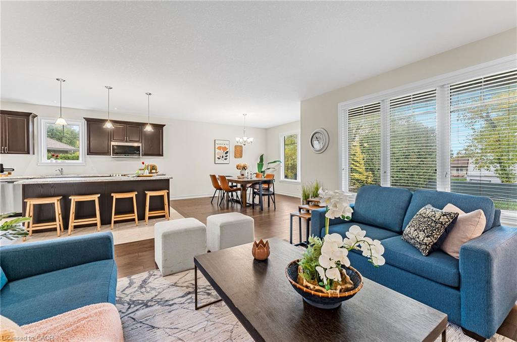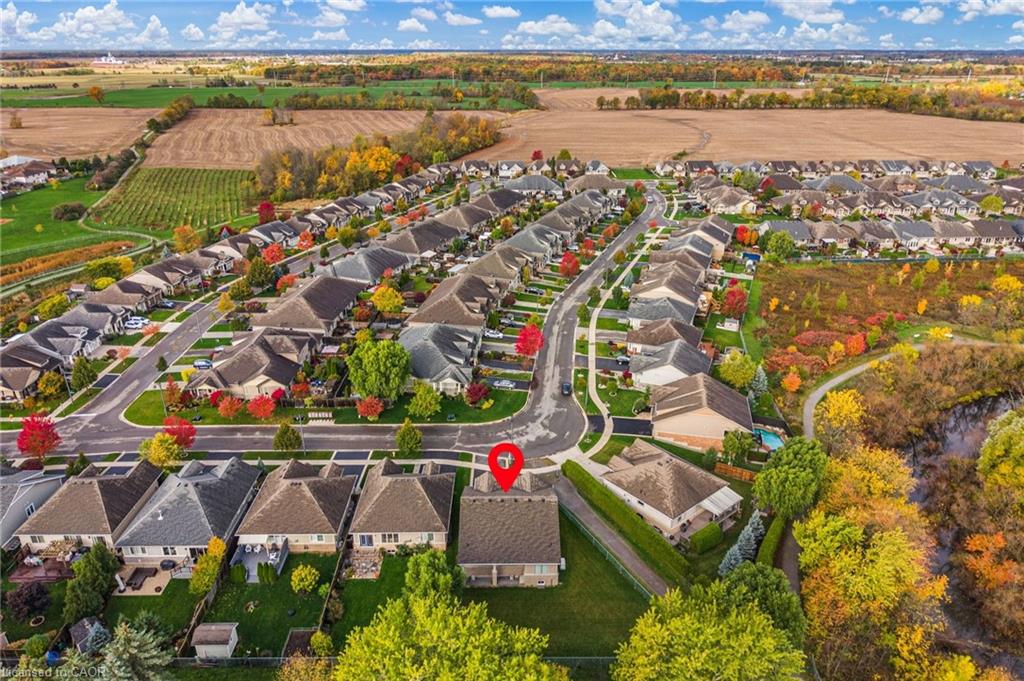 Welcome to this beautiful home in Smithville’s sought-after "Brookside on the Twenty" community. Built in 2014 by Phelps Homes, this Craftsman-style bungalow offers 1,532 square feet of convenient one-floor living. Steps from the scenic South Creek Trail along Twenty Mile Creek, this home offers peaceful, low-maintenance living in a quiet, friendly neighbourhood. Complete with a double garage, this bungalow is ideal for downsizers or retirees seeking comfort, style, and serenity. Inside, 9’ ceilings enhance the open-concept layout featuring engineered hardwood in the living and dining areas. The spacious kitchen includes a large island with seating and flows easily into the living space — perfect for entertaining. The primary suite impresses with a massive walk-in closet and a 3-piece ensuite with a walk-in glass shower. A main-floor laundry/mudroom with direct garage entry adds convenience. Enjoy year-round comfort with a Generac generator that services the entire home. The private pie-shaped lot offers a lush backyard with ample grass space.