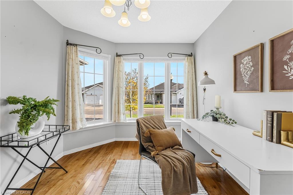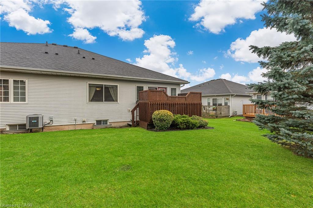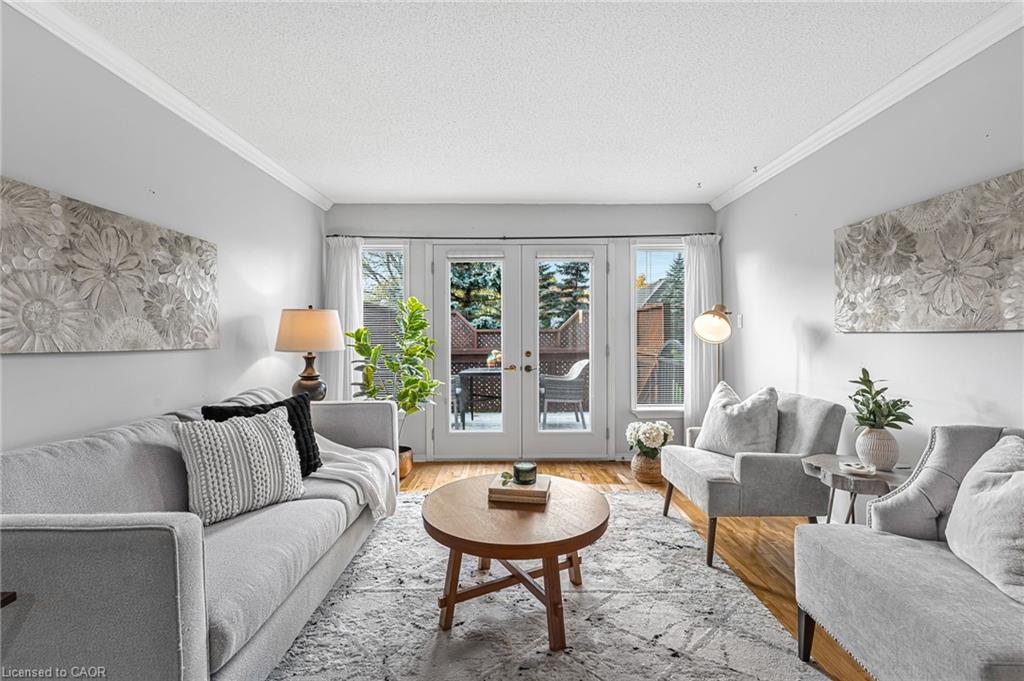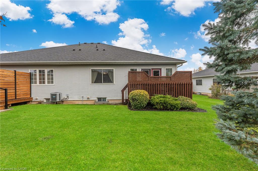 Welcome to 1 Village Drive here in Wes- Li Gardens - known for its peaceful setting and friendly atmosphere here in the heart of Smithville. This beautifully maintained one-floor home features maple flooring throughout, a bright eat-in kitchen and included appliances, and a spacious living/dining area with crown moulding. Modern French doors with full glass panels open to a private deck overlooking peaceful greenspace. The primary bedroom offers double closets, while the front room makes an ideal den, craft room or guest bedroom. Enjoy a 4-piece main bath, main-floor laundry which includes washer, dryer, a bonus chest freezer, and inside entry to the single garage with automatic door opener. The full unfinished basement provides ample storage or perhaps a future recreation room, an extra bedroom, maybe even an office. Walking distance to downtown shops and amenities and move-in ready. Experience easy, relaxed living at 1 Village Drive - your next chapter starts here.