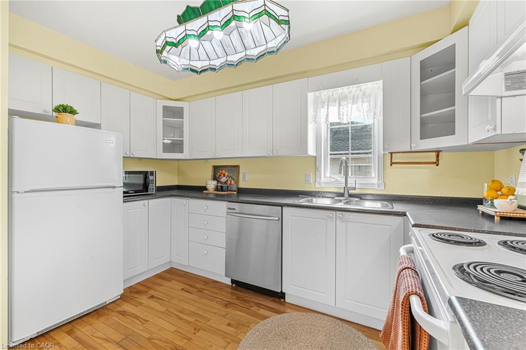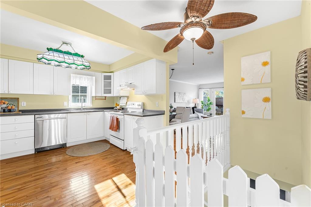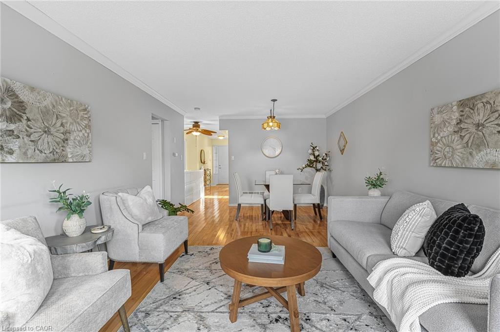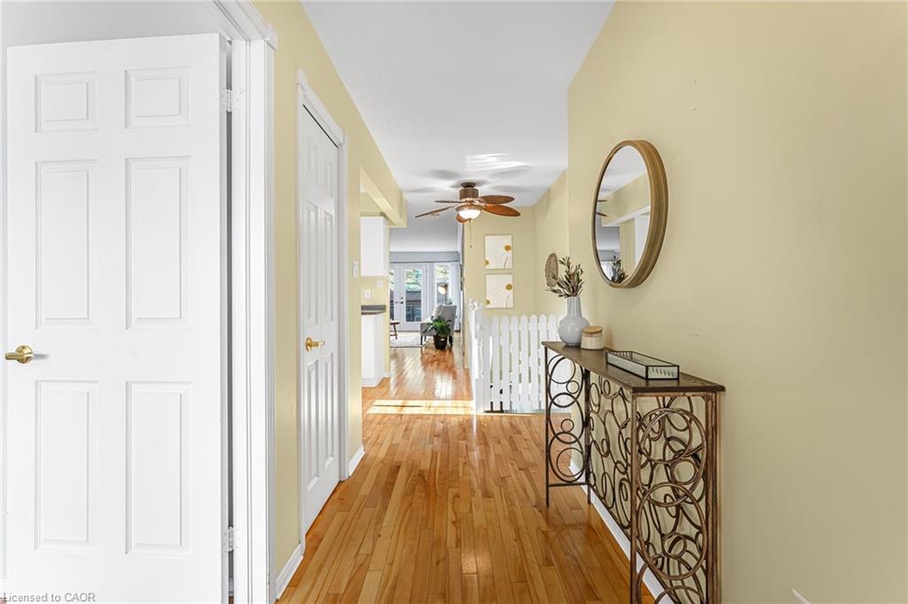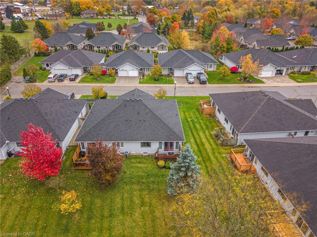 Welcome to 1 Village Drive here in Wes- Li Gardens - known for its peaceful setting and friendly atmosphere here in the heart of Smithville. This beautifully maintained one-floor home features maple flooring throughout, a bright eat-in kitchen and included appliances, and a spacious living/dining area with crown moulding. Modern French doors with full glass panels open to a private deck overlooking peaceful greenspace. The primary bedroom offers double closets, while the front room makes an ideal den, craft room or guest bedroom. Enjoy a 4-piece main bath, main-floor laundry which includes washer, dryer, a bonus chest freezer, and inside entry to the single garage with automatic door opener. The full unfinished basement provides ample storage or perhaps a future recreation room, an extra bedroom, maybe even an office. Walking distance to downtown shops and amenities and move-in ready. Experience easy, relaxed living at 1 Village Drive - your next chapter starts here.