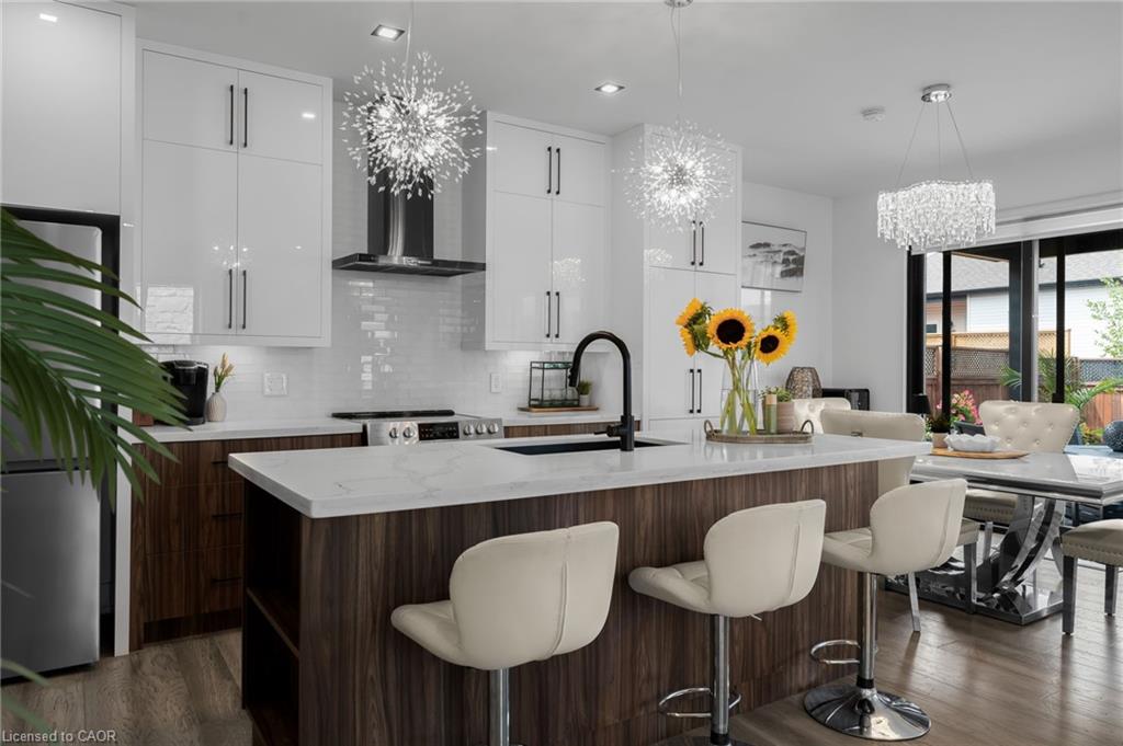 Experience refined elegance and modern comfort in this luxurious two-storey masterpiece. Built in 2019, this impeccably designed home offers 3+1 bedrooms, 3.5 bathrooms, and a fully finished basement - crafted with high end finishes and attention to detail throughout. Step inside to find engineered hardwood flooring throughout, a gourmet kitchen with sleek quartz countertops, premium stainless steel appliances, a walk-in pantry, and a large island - an entertainer’s dream. Retreat upstairs to your private primary bedroom, featuring its own spa room with a soaker tub, three closets, and a beautiful ensuite with double vanities. Also upstairs are two additional bedrooms, a laundry area, a beautiful 4-piece bathroom, and a spacious loft - ideal for a workout area, reading nook, or home office space. Outside, enjoy a triple-wide concrete driveway with parking for six vehicles, plus your own backyard oasis complete with a hot tub and covered patio area.All major systems (furnace, A/C, shingles, etc.) are just six years new, allowing peace of mind for many years to come. Located a stone’s throw to a large greenspace with a playground and a short drive to all amenities. This exceptional property blends sophistication, comfort, and lifestyle all in one remarkable package.