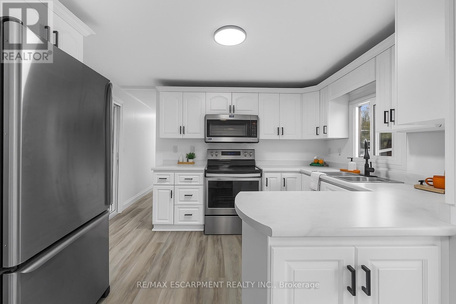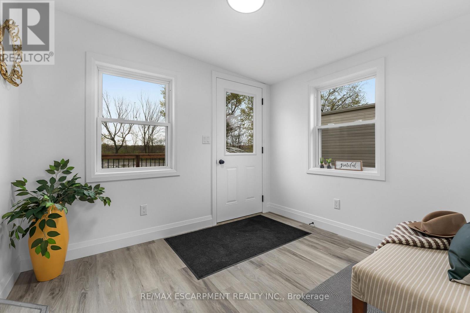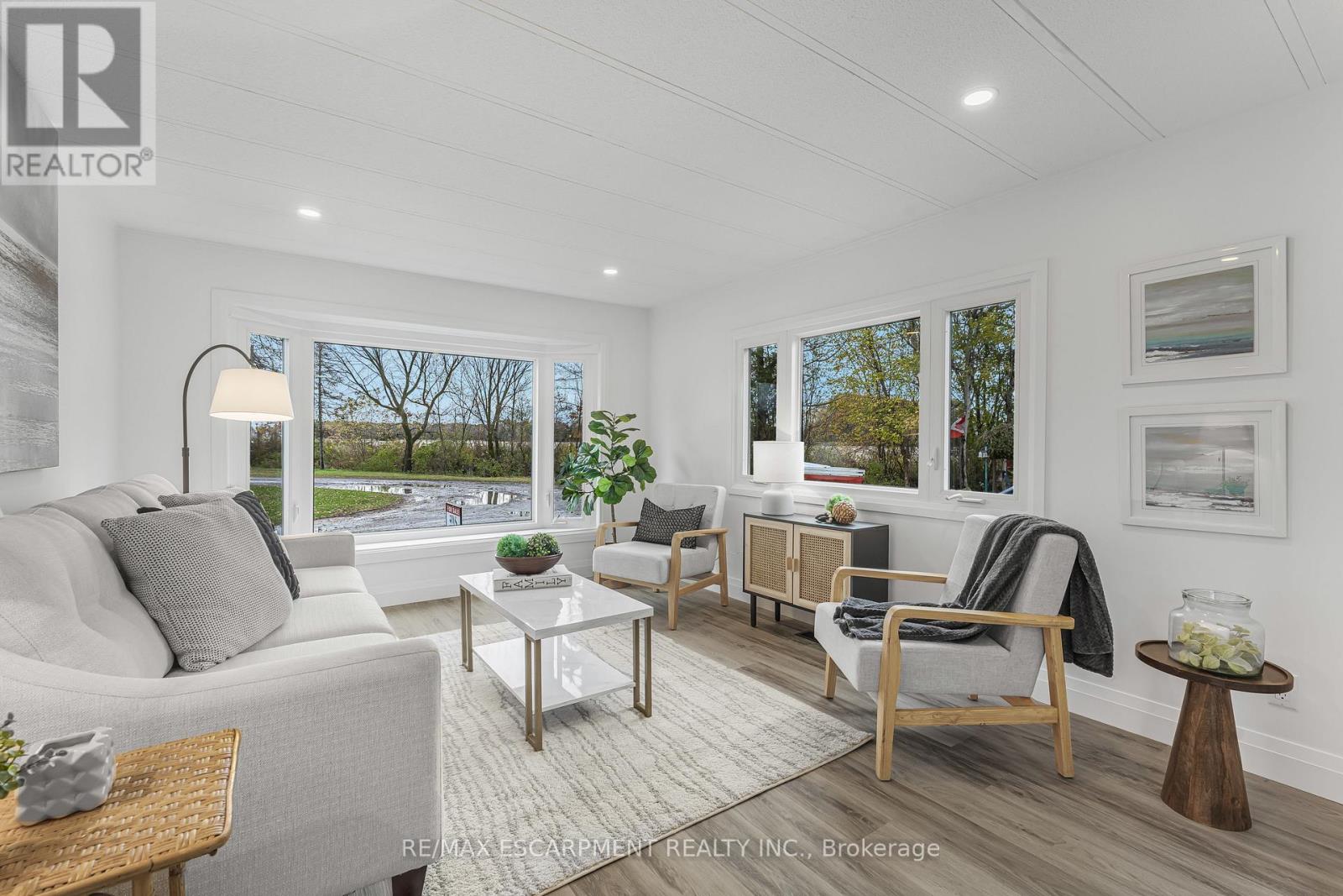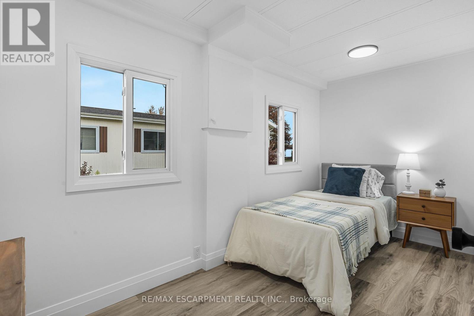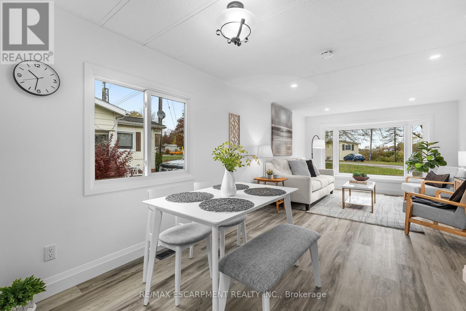 Welcome to Ellsworth Acres Mobile Home Community in Wainfleet! This beautifully updated mobile home has been extensively renovated and is move-in ready. The spacious, modern kitchen boasts stainless steel appliances, stylish flooring, new drywall with vapor barrier, and sleek pot lighting. The open-concept kitchen, living, and dining area is bright and inviting, featuring large vinyl/thermal windows and a charming coffee bar. The home includes two bedrooms plus a generous office-perfect for hosting guests or working from home. The fully updated bathroom features a brand-new walk-in shower, ideal for those with mobility needs. Additional improvements include new PEX water lines, doors, trim, and a brand-new deck for outdoor enjoyment. With parking for two vehicles and a 10' x 10' storage shed, this move-in-ready home checks all the boxes. Monthly fees cover land lease, property taxes, garbage and snow removal, water, and septic services. Ideally situated just a short drive from Dunnville, Welland, and Smithville, this home offers the perfect blend of modern comfort and small-town charm. Note: some photos have been virtually staged. (id:52316)
