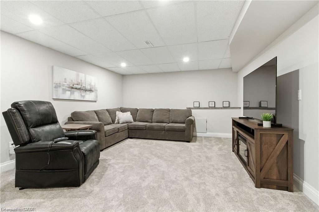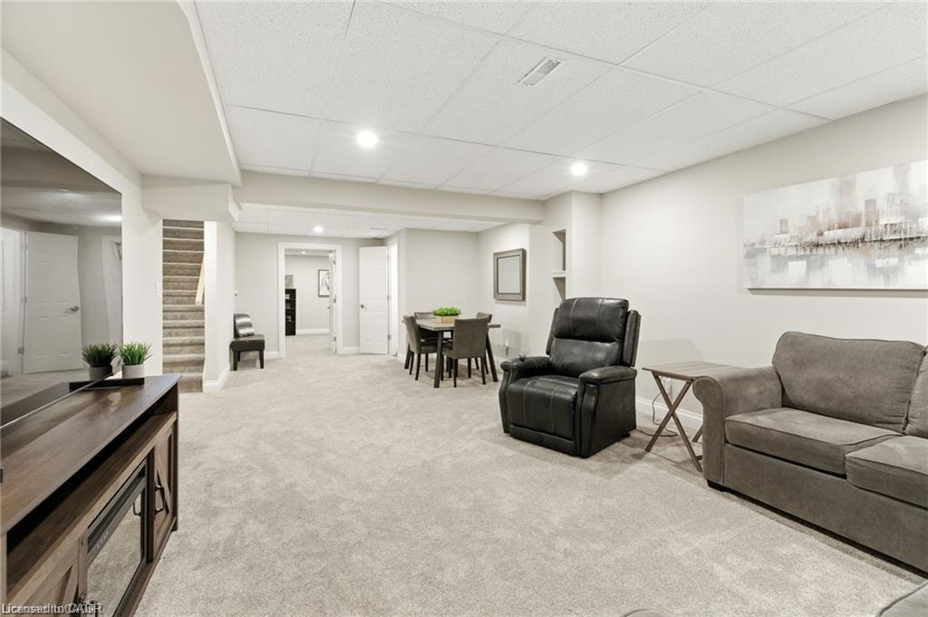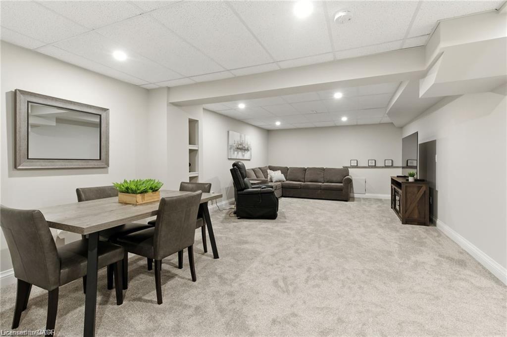 Unique 2-storey Townhome with COMPLETE Main floor living in desirable Binbrook! Welcome to this rare and spacious 4 Bed, 4 bath home that ALSO features 2 office spaces and is tucked away in a safe, family-friendly complex. This versatile neighbourhood includes Singles, couples, seniors and plenty of families with children. Unit #20 backs onto an abundance of serene green space and a peaceful walking trail-an ideal setting for relaxation and outdoor enjoyment. Inside, you'll find a bright open-concept kitchen, dining and living room complete with gas Fireplace and 9 ft ceilings. The thoughtful design of the main floor also includes the primary bedroom with 3pc Ensuite, a light filled office space at the front of the home and convenient laundry. Upstairs are 2 large bedrooms and a full bathroom overlooking the scenic yard. The lower level is fantastic! Completely finished in 2023, this beautiful space will be your new favourite destination. Huge Family room plus a play area, full Bedroom, 2 pc Bath (PLENTY of room to add a shower), huge office AND a utility room with storage. Every area of this gorgeous home has been meticulously planned out and finished in style. Too many upgrades to list, please see the features list! Book yourself in to see this stunning home today, you'll be glad you did.