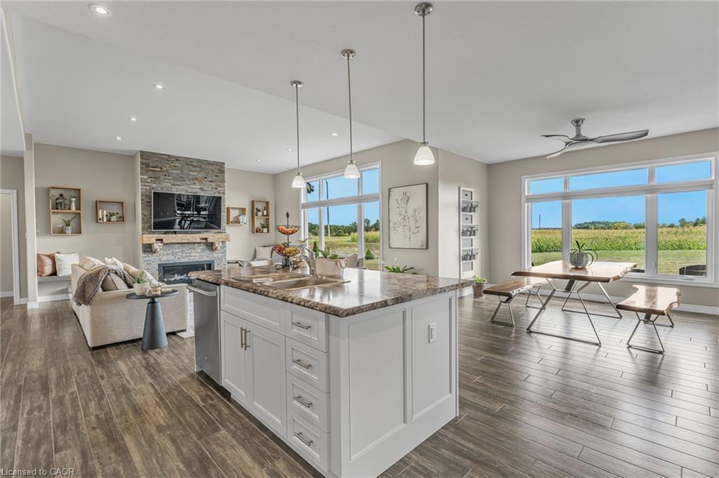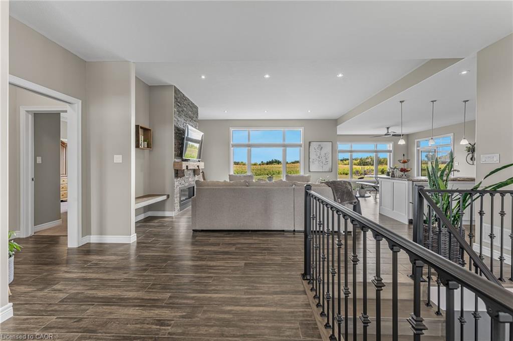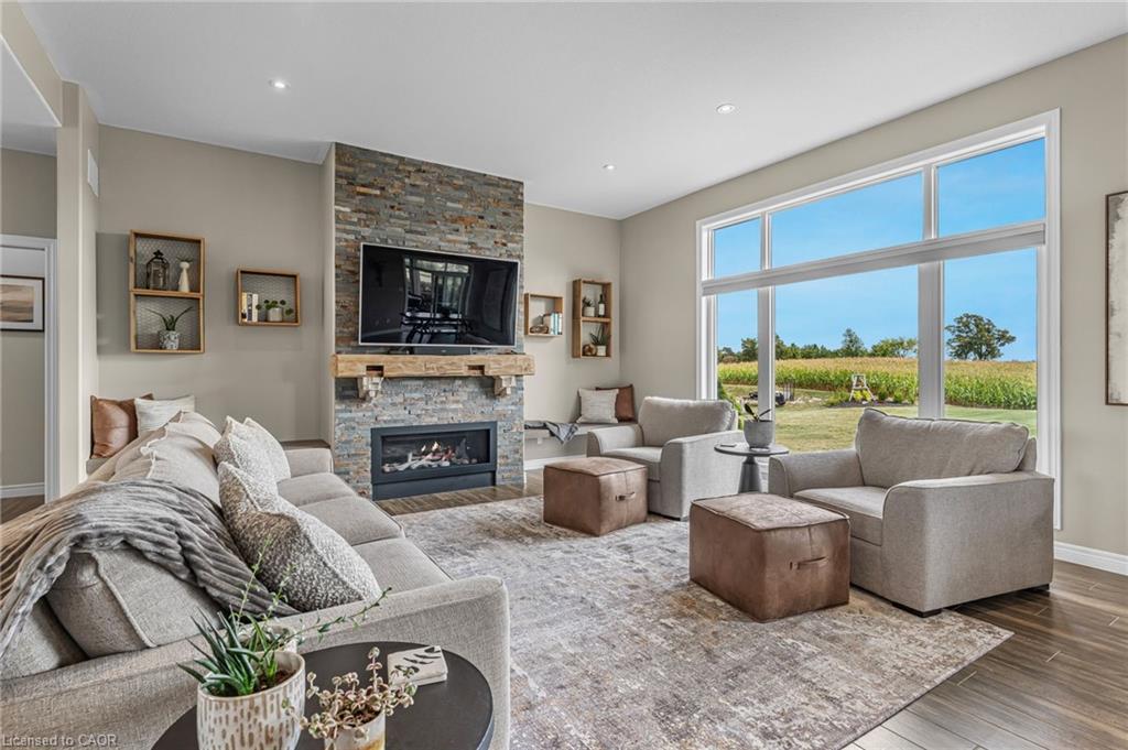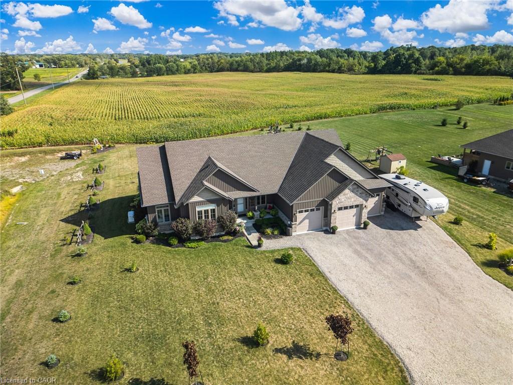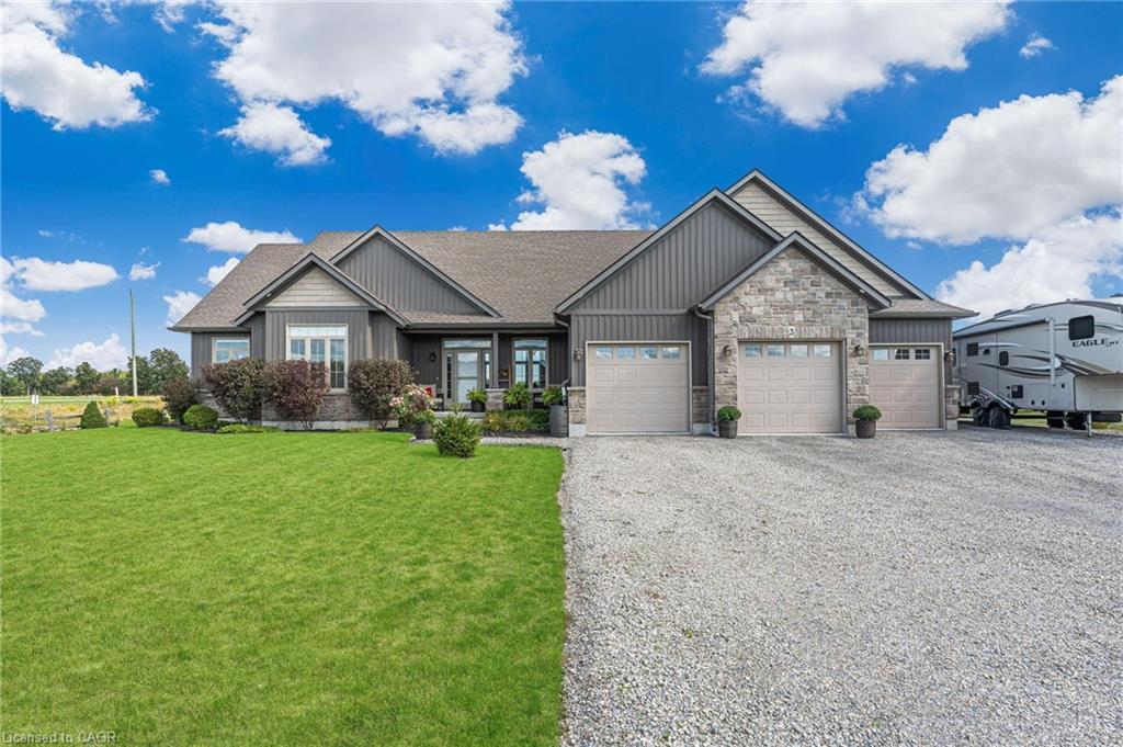 Welcome to 3 Silverthorne Court - a stunning custom built bungalow situated in a desirable rural cul de sac just 30 minutes to Hamilton. Built in 2019, this thoughtfully designed layout includes 3 main floor bedrooms, 2 full bathrooms, 2 half bathrooms, and a finished basement with a separate entrance from the garage - ideal for a future in-law setup. Leading up to the property, you’ll notice the well manicured lawn overlooking a beautiful farmers field. Enjoy parking for 10 vehicles in the large driveway, plus an impressive triple car garage with soaring ceilings - perfect for a golf simulator, hoist, boat storage, workshop, and more! The open concept main floor features impressive 10 foot ceilings, loads of natural light, a floor to ceiling fireplace, and luxury vinyl plank flooring. A true highlight is the sunroom - offering a front row seat to the beautiful countryside. The gorgeous kitchen boasts stainless steel appliances, a huge island for entertaining, and a walk through pantry for added convenience. Heading downstairs, you’ll find a sprawling finished basement with an additional bathroom, providing loads of space for all of your entertaining needs, and tons of thoughtfully designed storage space. BONUS - natural gas heating, fibre optic internet, and a 16 KW Generac generator - a rural dream! Enjoy over 3,000 square feet of finished living space in a rural package that speaks for itself. Click on multimedia for more information on this amazing property!