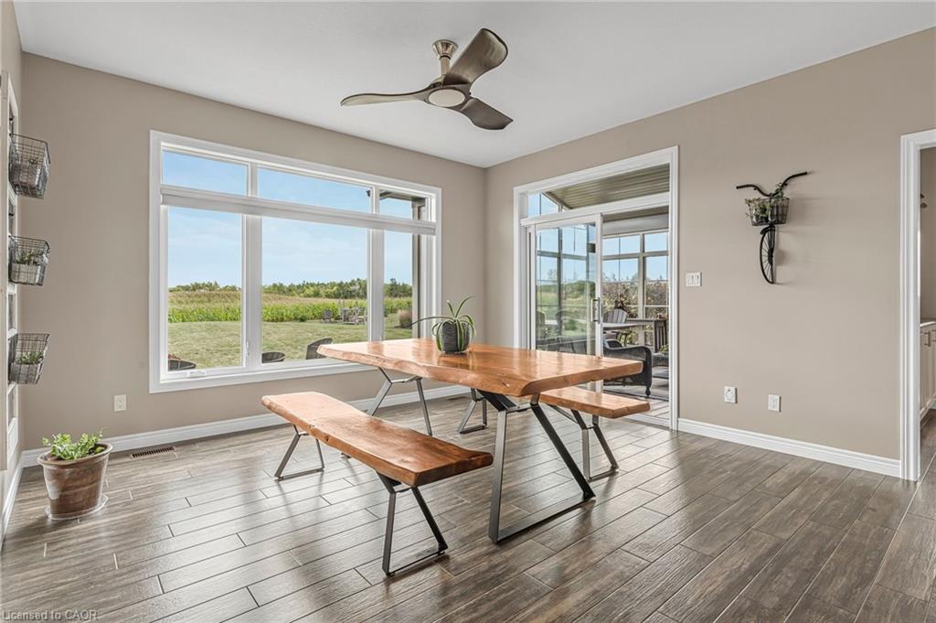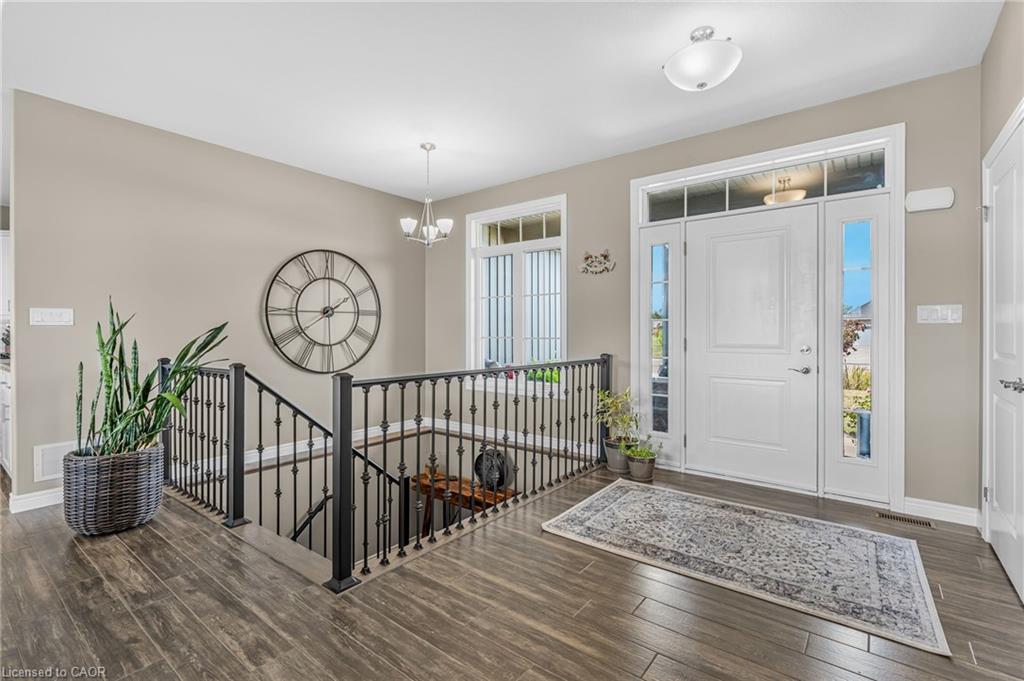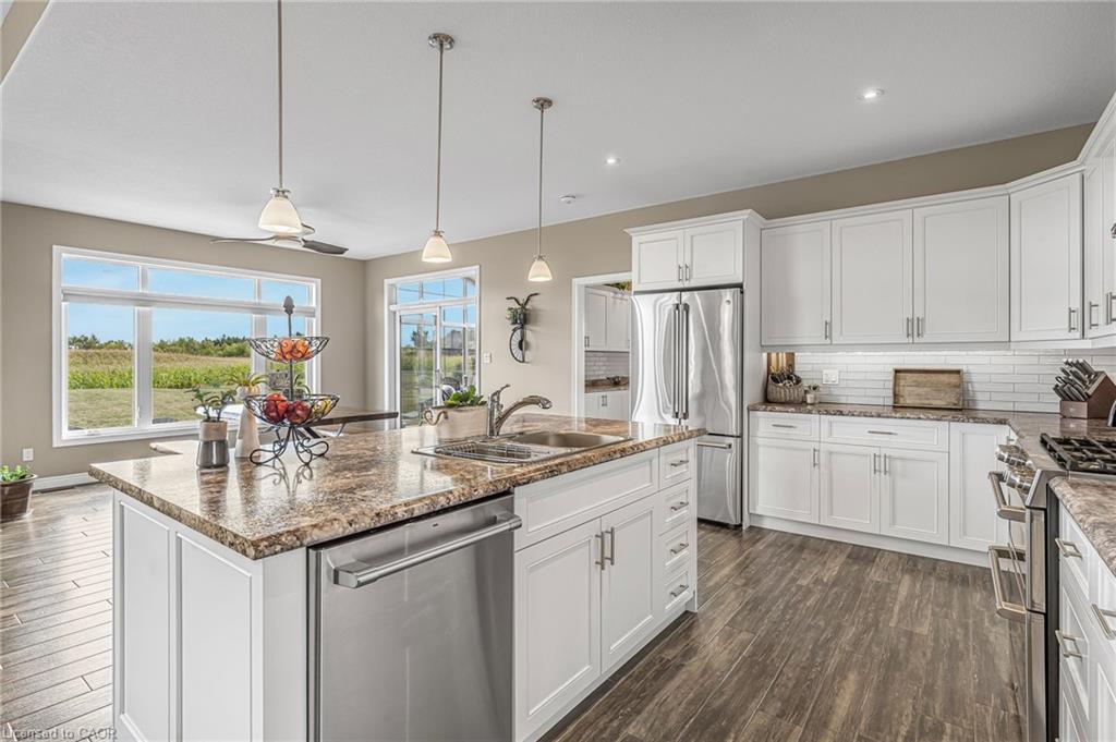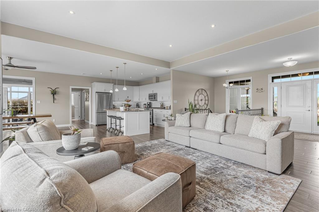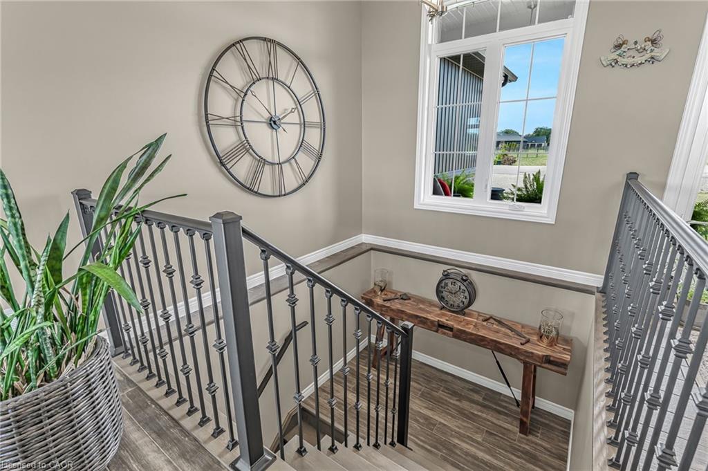 Welcome to 3 Silverthorne Court - a stunning custom built bungalow situated in a desirable rural cul de sac just 30 minutes to Hamilton. Built in 2019, this thoughtfully designed layout includes 3 main floor bedrooms, 2 full bathrooms, 2 half bathrooms, and a finished basement with a separate entrance from the garage - ideal for a future in-law setup. Leading up to the property, you’ll notice the well manicured lawn overlooking a beautiful farmers field. Enjoy parking for 10 vehicles in the large driveway, plus an impressive triple car garage with soaring ceilings - perfect for a golf simulator, hoist, boat storage, workshop, and more! The open concept main floor features impressive 10 foot ceilings, loads of natural light, a floor to ceiling fireplace, and luxury vinyl plank flooring. A true highlight is the sunroom - offering a front row seat to the beautiful countryside. The gorgeous kitchen boasts stainless steel appliances, a huge island for entertaining, and a walk through pantry for added convenience. Heading downstairs, you’ll find a sprawling finished basement with an additional bathroom, providing loads of space for all of your entertaining needs, and tons of thoughtfully designed storage space. BONUS - natural gas heating, fibre optic internet, and a 16 KW Generac generator - a rural dream! Enjoy over 3,000 square feet of finished living space in a rural package that speaks for itself. Click on multimedia for more information on this amazing property!