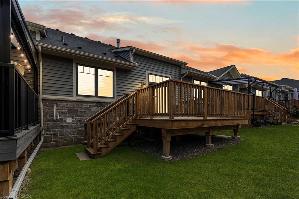 Welcome to maintenance-free living in the heart of wine country! Nestled in a private community in picturesque Jordan Village -just moments from the QEW and surrounded by many acclaimed wineries - this elegant 1,284 sq. ft. bungalow offers luxury, comfort, and style in one seamless package. From the moment you arrive, the home’s curb appeal stands out with an interlock driveway, modern exterior design, and a striking front door with a retractable screen. Step inside to discover a thoughtfully designed open-concept layout, perfect for one-floor living. The living room impresses with soaring 12-foot ceilings and a stunning gas fireplace that creates a warm, inviting ambiance. The chef-inspired kitchen is a true showstopper, featuring an oversized island with quartz countertops, an undermount sink, under-cabinet lighting, a built-in wine rack, and premium black stainless steel appliances. Retreat to the spacious primary suite, complete with a large walk-in closet and a spa-like ensuite bathroom, where you can unwind in the luxurious soaker tub after a long day. Downstairs, you'll find an unfinished basement (with a roughed in bathroom!) offering over 1,200 square feet of endless potential to finish to your needs. Don’t miss this opportunity to enjoy a refined lifestyle in a tranquil community, all within close proximity to boutique shops, fine dining, and world-class wineries. This is Niagara living at its finest!