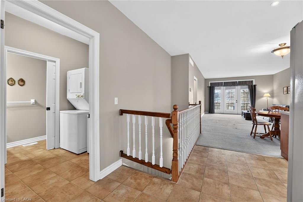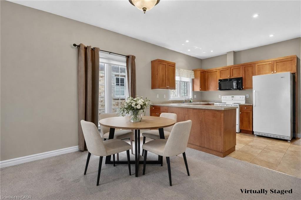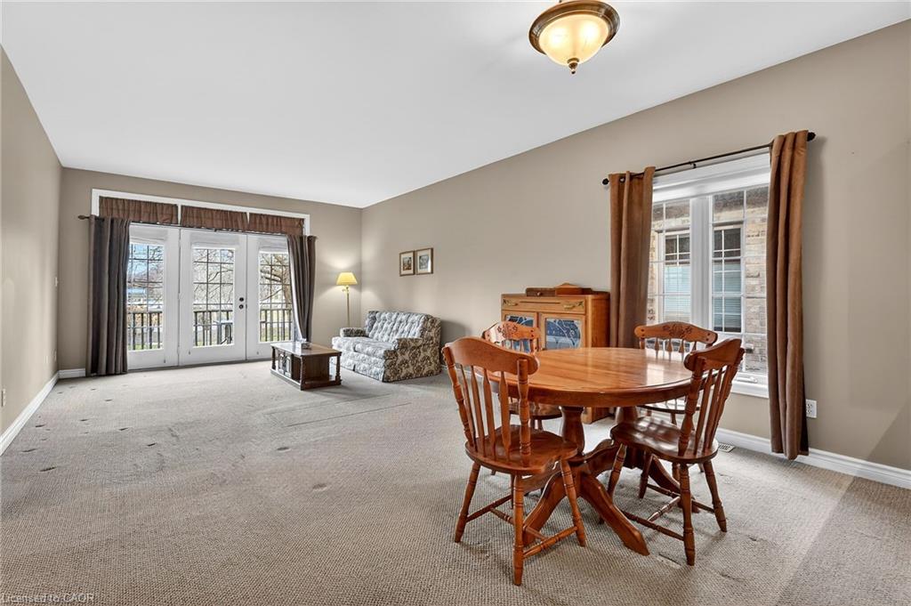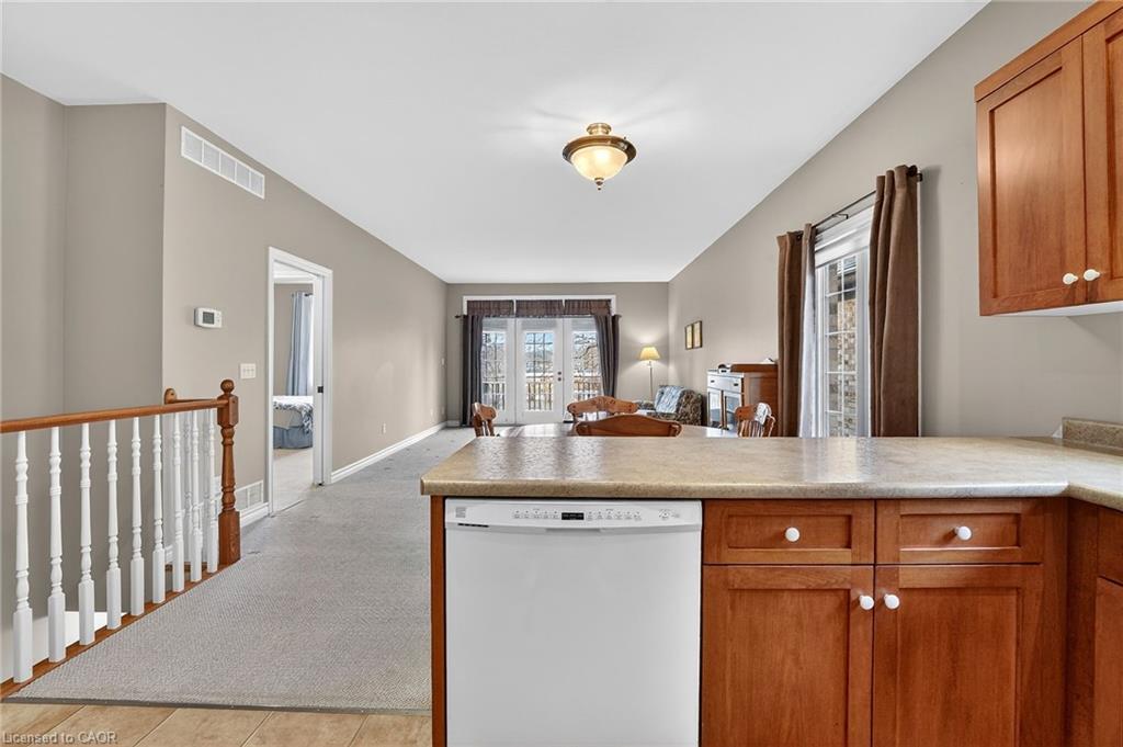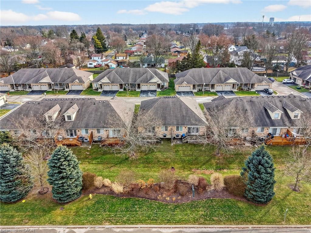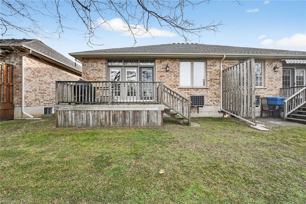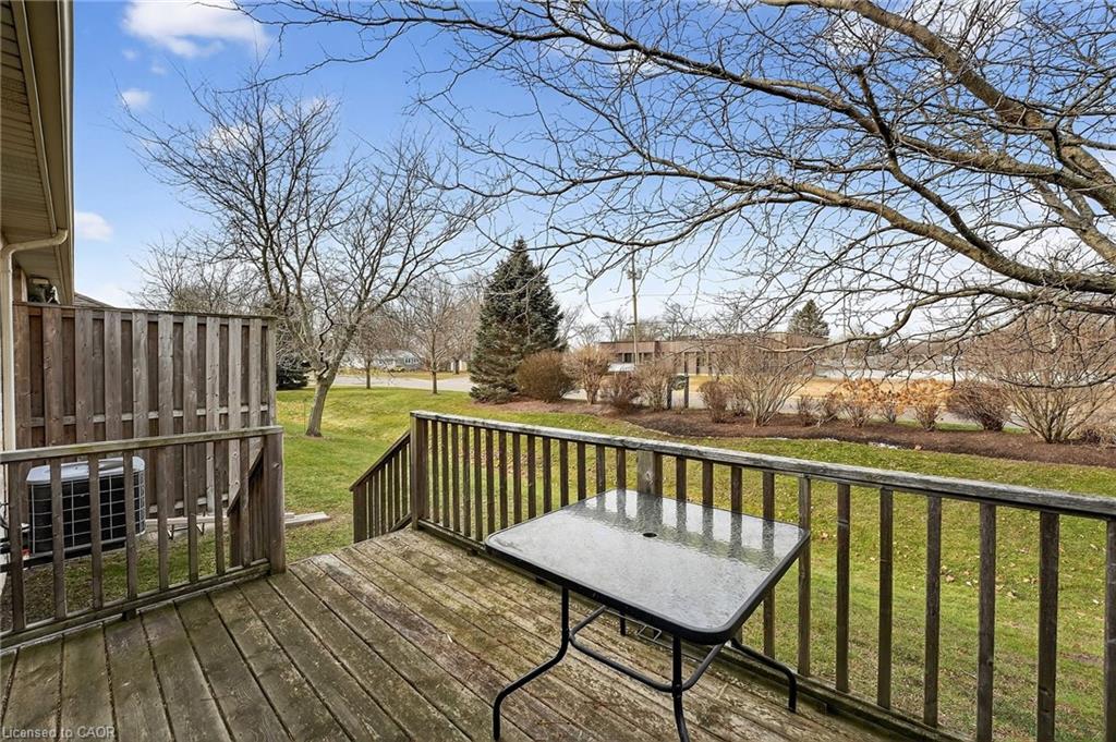Welcome to easy, maintenance-free living in the desirable Maple Creek Landing community of Dunnville. Built in 2006 and well maintained, this bungalow is perfectly suited for downsizers, retirees, or empty nesters seeking the comfort of one-floor living in a quiet, friendly neighbourhood. The thoughtful 2-bedroom, 1.5 bathroom layout offers both functionality and flexibility. A spacious kitchen flows seamlessly into the warm and welcoming living room, highlighted by a triple-wide patio door that opens to a generous deck—ideal for morning coffee or relaxed outdoor entertaining. The primary bedroom features a walk-in closet, while the second bedroom works equally well as a guest room, home office, or private library. Designed with convenience in mind, the home includes main-floor laundry with stackable washer and dryer, a 2-piece bath, owned water softener, and included accessibility equipment for those with mobility considerations. The unfinished basement provides excellent storage today, with the added bonus of a bathroom rough-in for future living space if desired. Enjoy a worry-free lifestyle with a condo fee that covers building insurance, exterior maintenance (including shingles and windows), common elements, lawn maintenance, parking, and snow removal. Ideally located just minutes from the downtown core, hospital, community centre, and Grand River, this exceptional bungalow offers comfort, peace of mind, and effortless living in a fantastic Dunnville community. Note: some photos have been virtually staged.