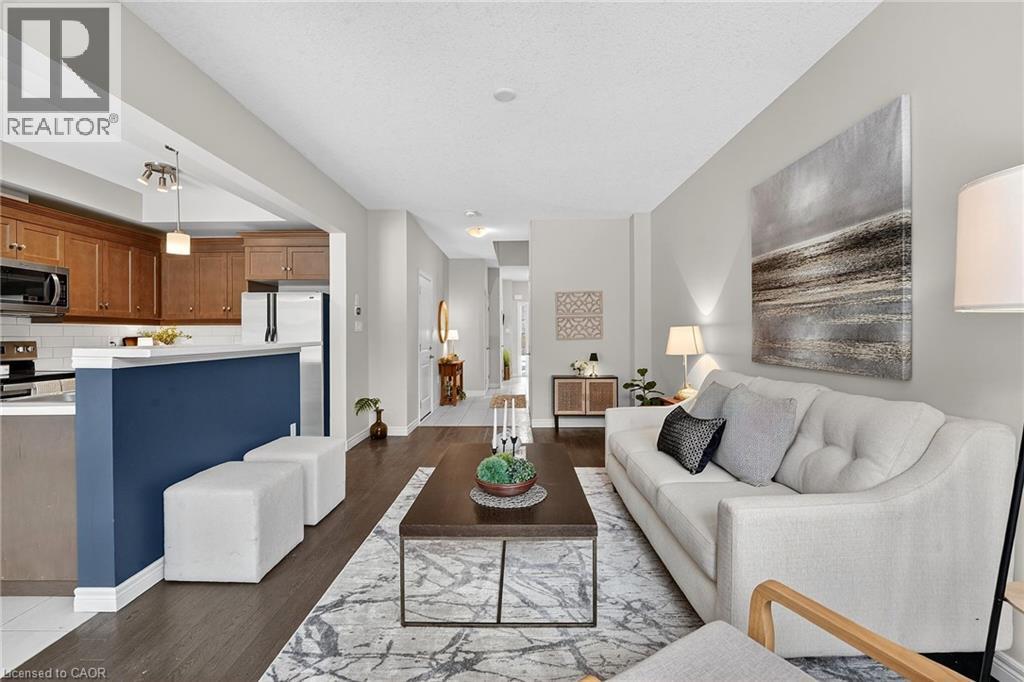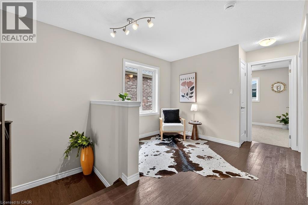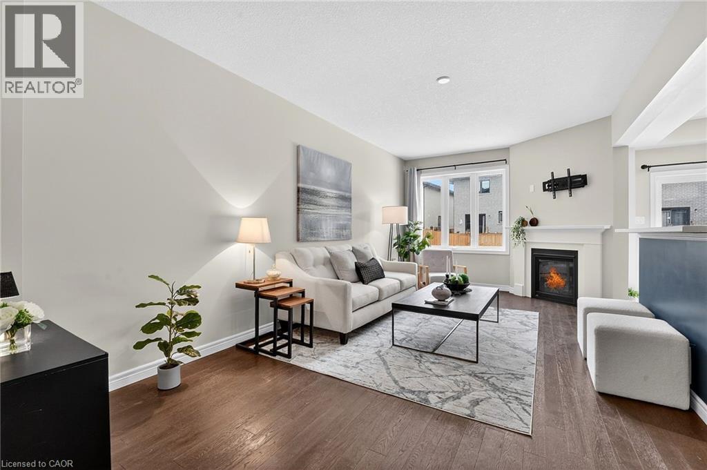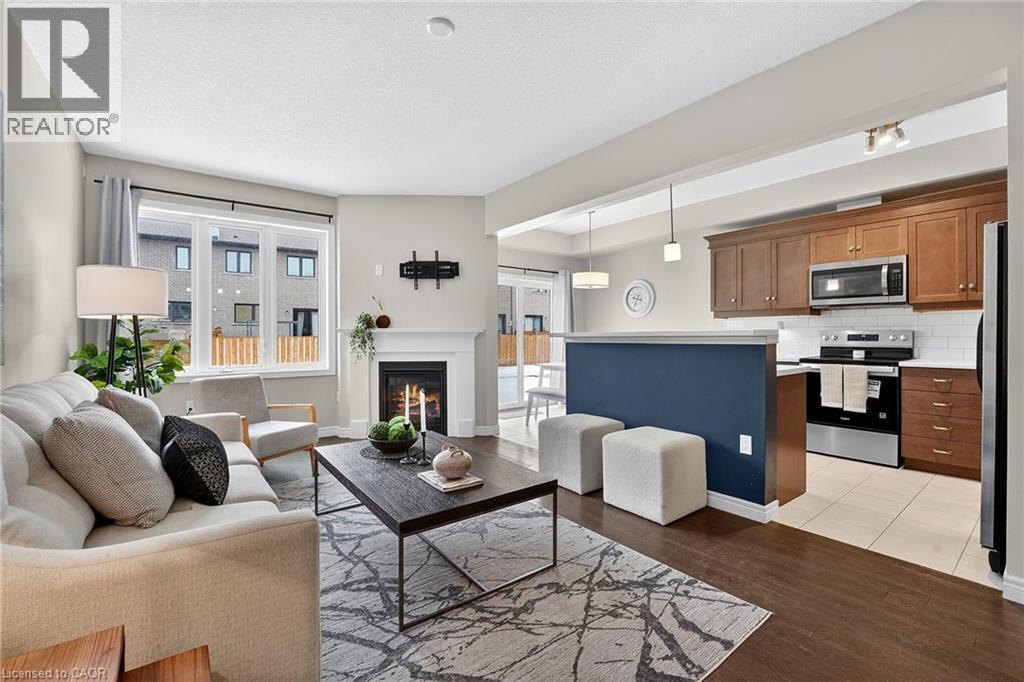 Welcome to this beautiful 2020-built freehold END UNIT townhome located just a short walk to the Village Square Plaza and charming downtown Smithville. With beautiful builder upgrades, an attached single-car garage, and a paved driveway for additional parking, this home delivers exceptional value in a family friendly neighbourhood. Stepping inside, the elegant oak staircase sets the tone for the quality and care found throughout. The bright, open-concept main floor is designed for both everyday living and effortless entertaining, featuring hardwood flooring and a cozy gas fireplace. The spacious kitchen is a true highlight - complete with stainless steel appliances, a stylish tiled backsplash, and abundant counter and cupboard space to inspire your inner chef. Upstairs, a versatile 10' x 8' loft with hardwood floors offers the ideal flex space for a home office, reading nook, or kids’ play area. The generous primary bedroom retreat features a walk-in closet and a private 3-piece ensuite. Two additional well-sized bedrooms with double closets, a 4-piece bathroom, and the convenience of second-floor laundry complete the upper level. The unfinished basement provides excellent potential - whether you envision extra storage, a home gym, or future finished living space tailored to your needs. Fantastic opportunity for first time buyers, young families, or investors! (id:52316)