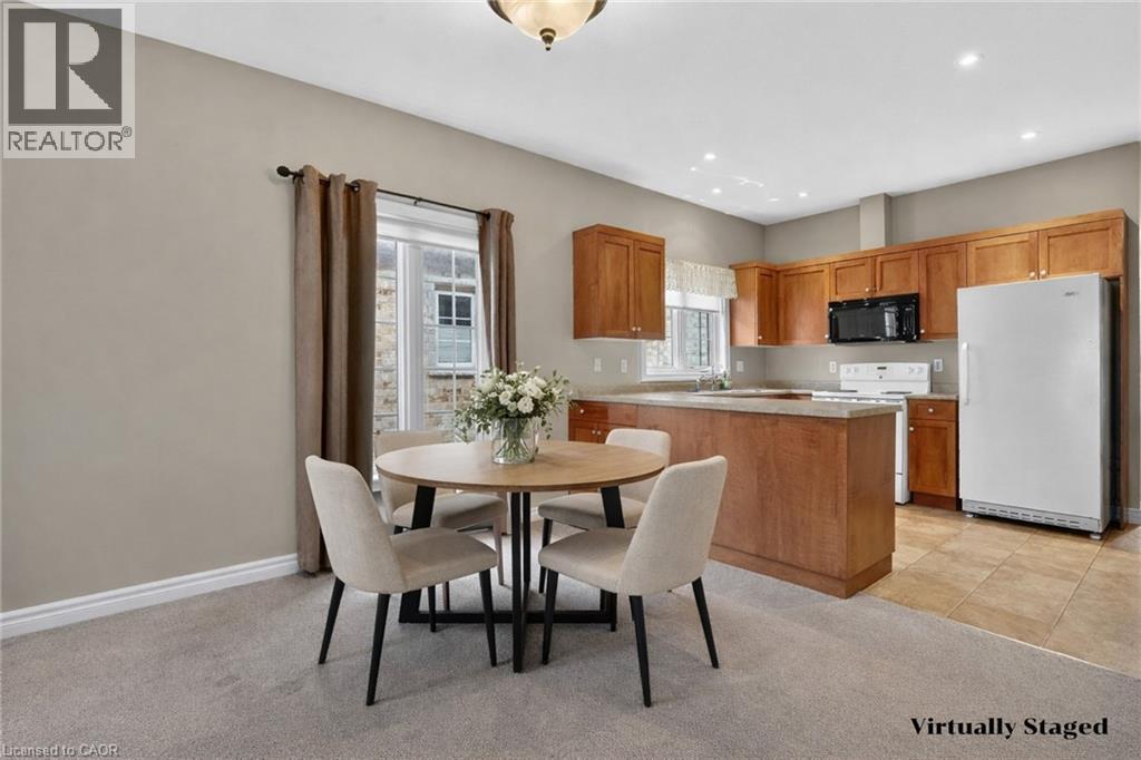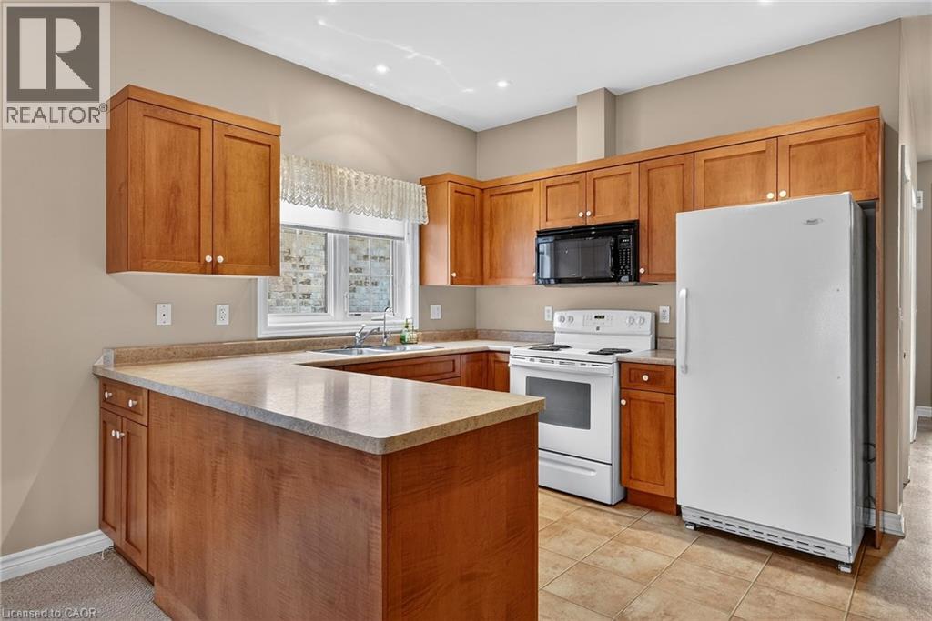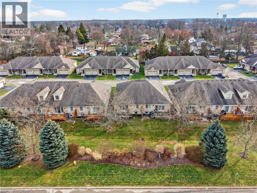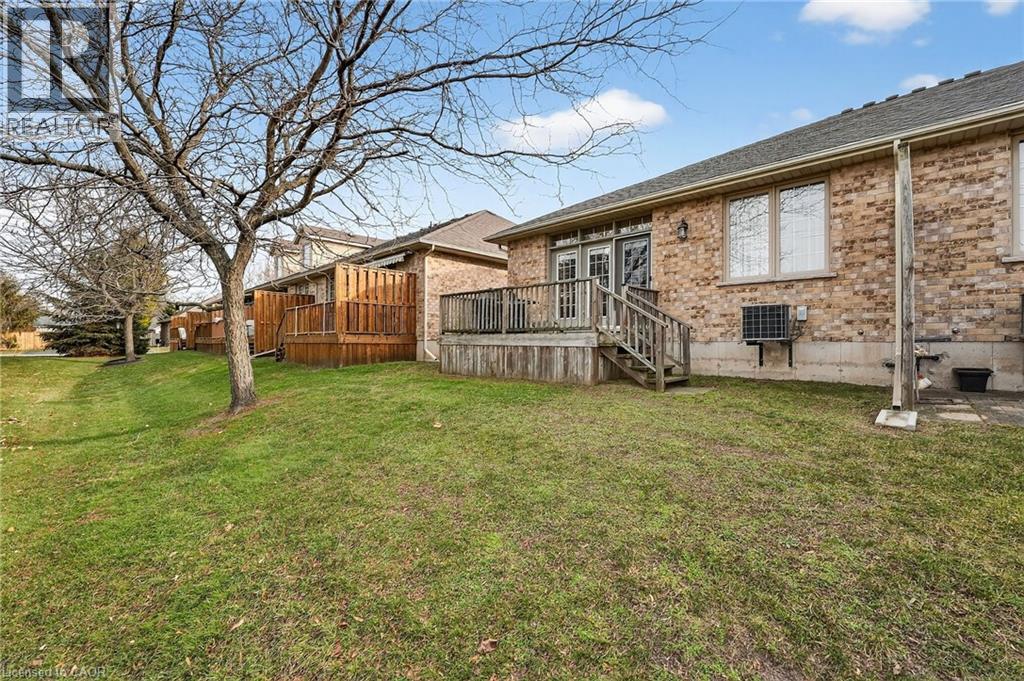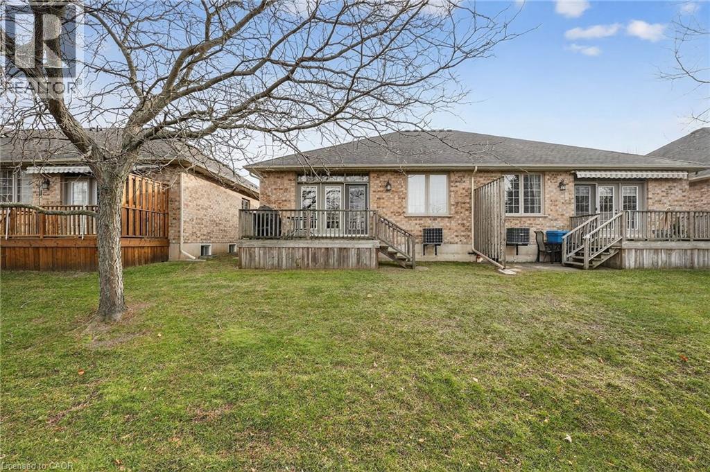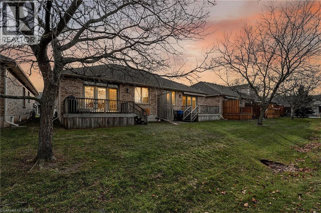 Welcome to easy, maintenance-free living in the desirable Maple Creek Landing community of Dunnville. Built in 2006 and well maintained, this bungalow is perfectly suited for downsizers, retirees, or empty nesters seeking the comfort of one-floor living in a quiet, friendly neighbourhood. The thoughtful 2-bedroom, 1.5 bathroom layout offers both functionality and flexibility. A spacious kitchen flows seamlessly into the warm and welcoming living room, highlighted by a triple-wide patio door that opens to a generous deck—ideal for morning coffee or relaxed outdoor entertaining. The primary bedroom features a walk-in closet, while the second bedroom works equally well as a guest room, home office, or private library. Designed with convenience in mind, the home includes main-floor laundry with stackable washer and dryer, a 2-piece bath, owned water softener, and included accessibility equipment for those with mobility considerations. The unfinished basement provides excellent storage today, with the added bonus of a bathroom rough-in for future living space if desired. Enjoy a worry-free lifestyle with a condo fee that covers building insurance, exterior maintenance (including shingles and windows), common elements, lawn maintenance, parking, and snow removal. Ideally located just minutes from the downtown core, hospital, community centre, and Grand River, this exceptional bungalow offers comfort, peace of mind, and effortless living in a fantastic Dunnville community. Note: some photos have been virtually staged. (id:52316)