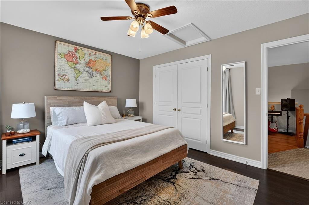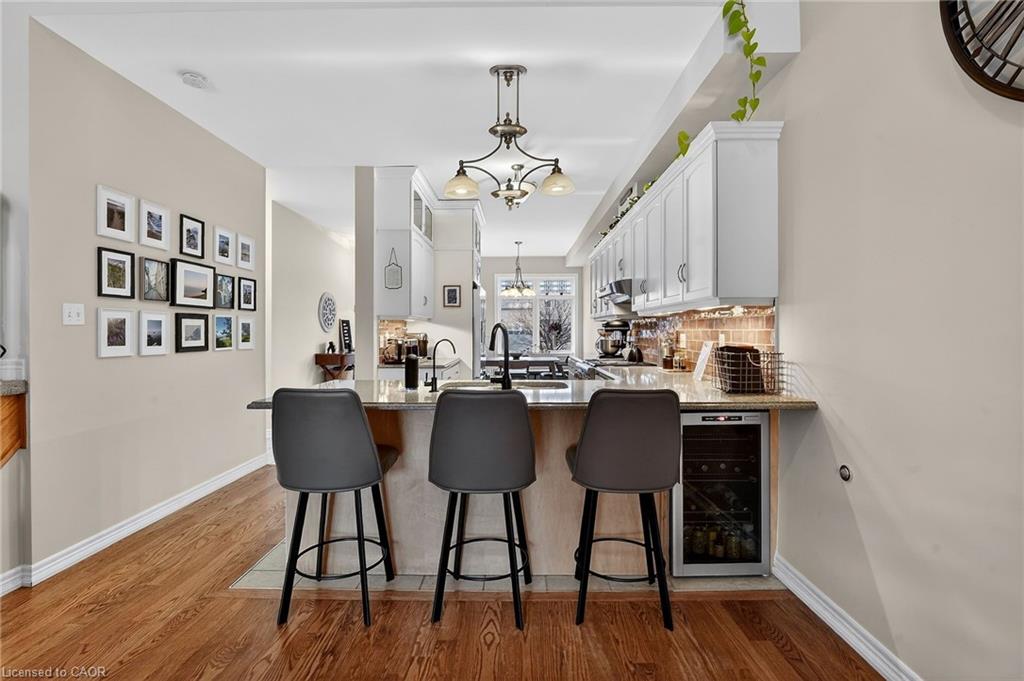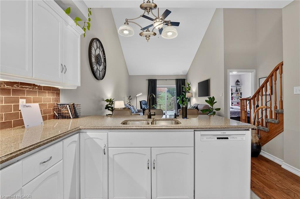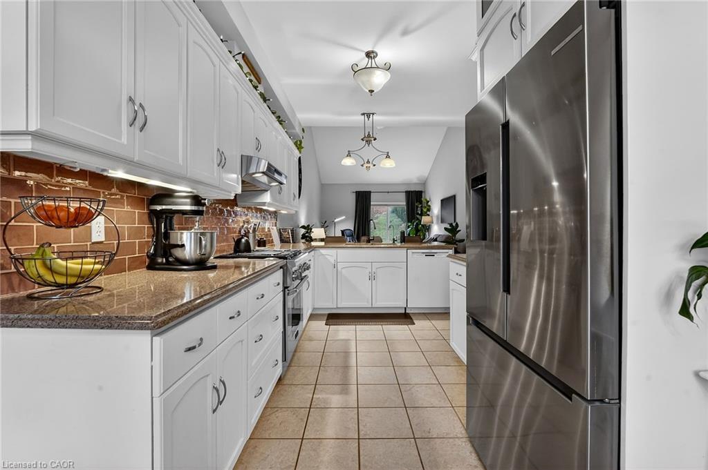 Tucked away on a quiet dead-end street just steps from Lake Ontario, this stylish bungaloft offers the perfect blend of comfort, privacy, and effortless living. Designed with downsizers, retirees, and empty nesters in mind, 6 Conrad Place provides the convenience of main-floor living with loads of additional space for guests and family. Set on an incredible lot with over 260 feet of depth, the backyard is ideal for morning coffee, evening wine, or entertaining friends on the spacious deck with gazebo and gas BBQ hookup. Inside, soaring vaulted ceilings and gleaming hardwood floors create a bright, welcoming living space. The eat-in kitchen is both elegant and functional, featuring granite countertops, a breakfast bar peninsula, built-in wine fridge, reverse osmosis water purification, and a premium Thermador gas range. The main-floor primary bedroom offers comfort and convenience with double closets and ensuite privilege to a spacious 4-piece bathroom. BONUS - additional laundry hookup located on the main floor for those seeking one floor living. Upstairs, a versatile loft overlooking the living room is perfect for a home office, reading lounge, or guest retreat (Murphy bed included), complemented by a second bedroom and stunning bathroom. The partially finished basement offers additional living space and excellent storage. Recent updates include new shingles (2024), EV rough-in (2025), fridge (2025), washer & dryer (2025), and new rear fence. Enjoy peaceful lakeside living in the charming town of Grimsby.